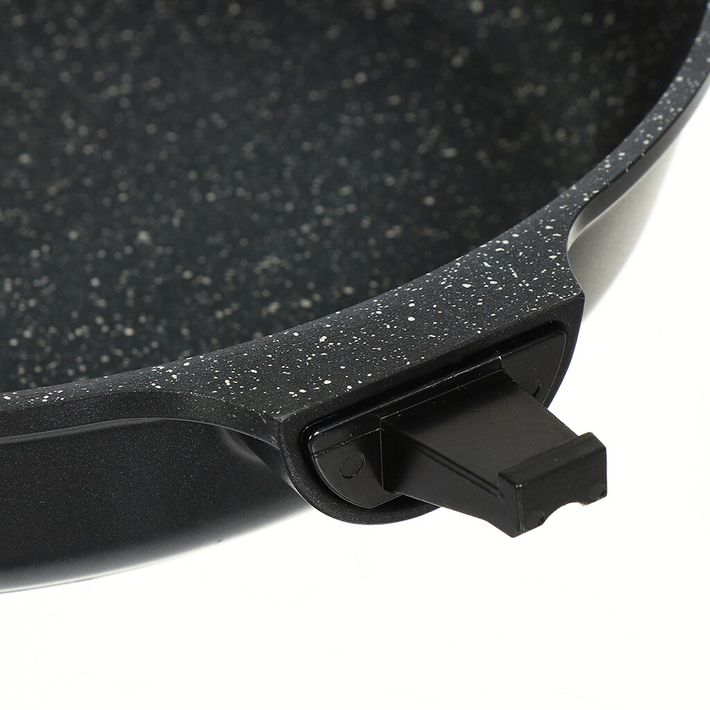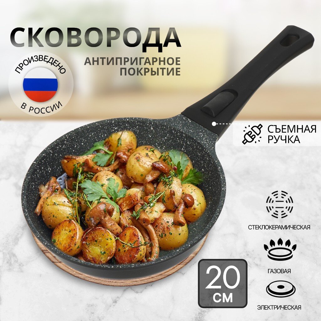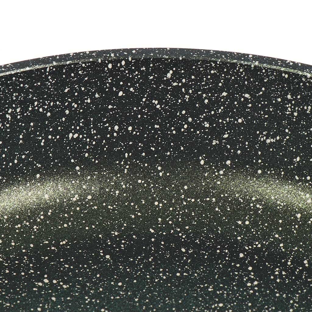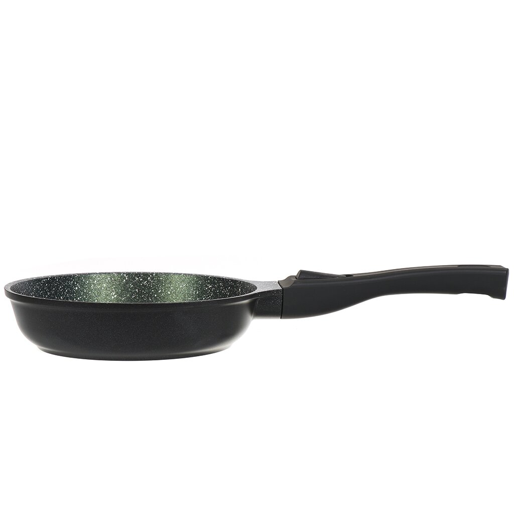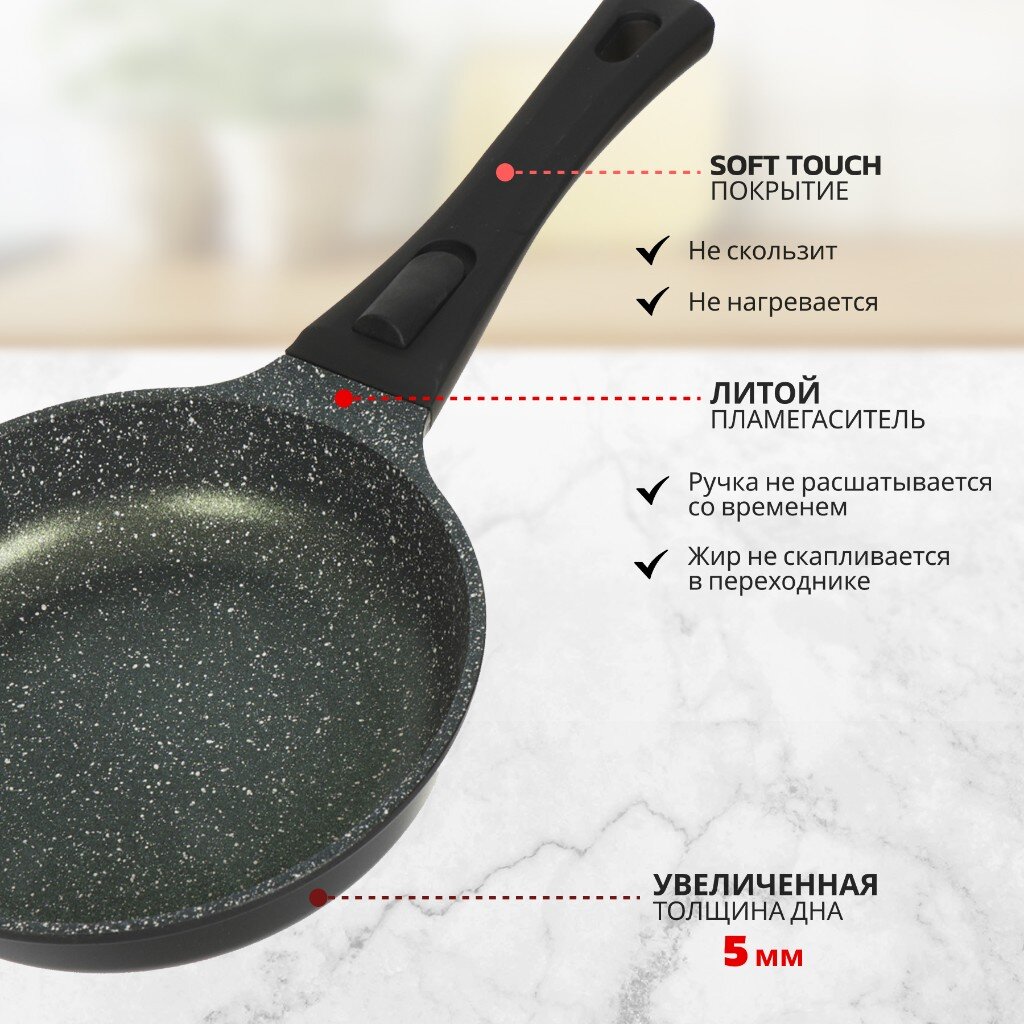 Сковорода выполнена литьем вручную из пищевого алюминия и имеет сверхпрочное семислойное антипригарное покрытие, безопасное для здоровья. Антипригарное покрытие обладает высокой прочностью к истиранию, что увеличивает срок службы сковороды в 5 раз. Форма сковороды обеспечивает устойчивость к деформации при длительном использовании. Дно оптимальной толщины 5 мм способствует равномерному распределению тепла для наилучшего приготовления ваших блюд. Сковорода имеет удобную ручку, которая не нагревается при эксплуатации. Посуда легко и быстро моется благодаря гладкой непористой поверхности. Сковорода не содержит PFOA, при нагревании не выделяются вредные токсичные и канцерогенные вещества.