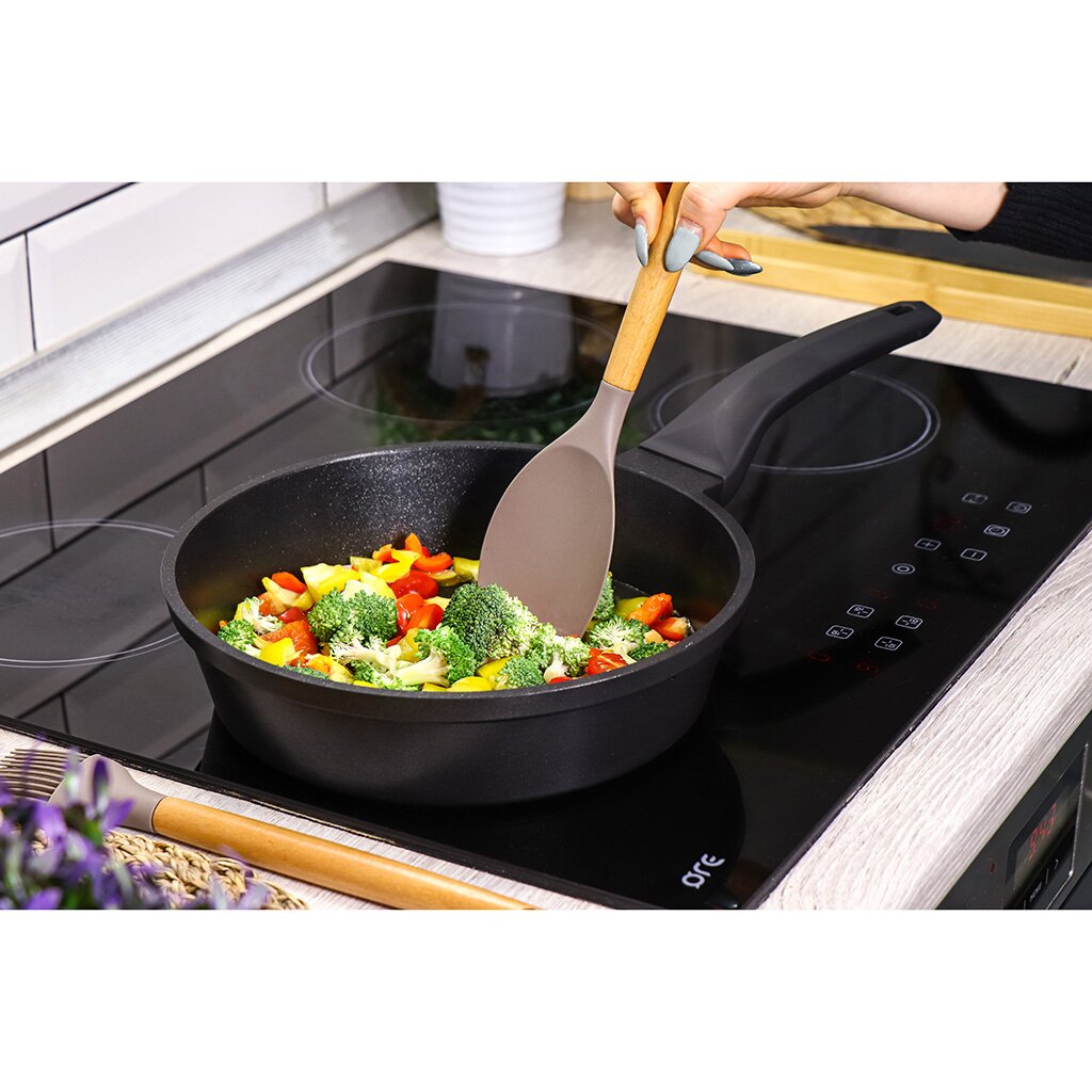 Выполненная из литого алюминия сковорода Гурман Verde благодаря быстрому нагреву поспособствует сокращению времени приготовления пищи и экономии энергии. Антипригарное покрытие сковороды при термической обработке не выделяет вредных химических веществ, порадует вас прочностью и долговечностью.