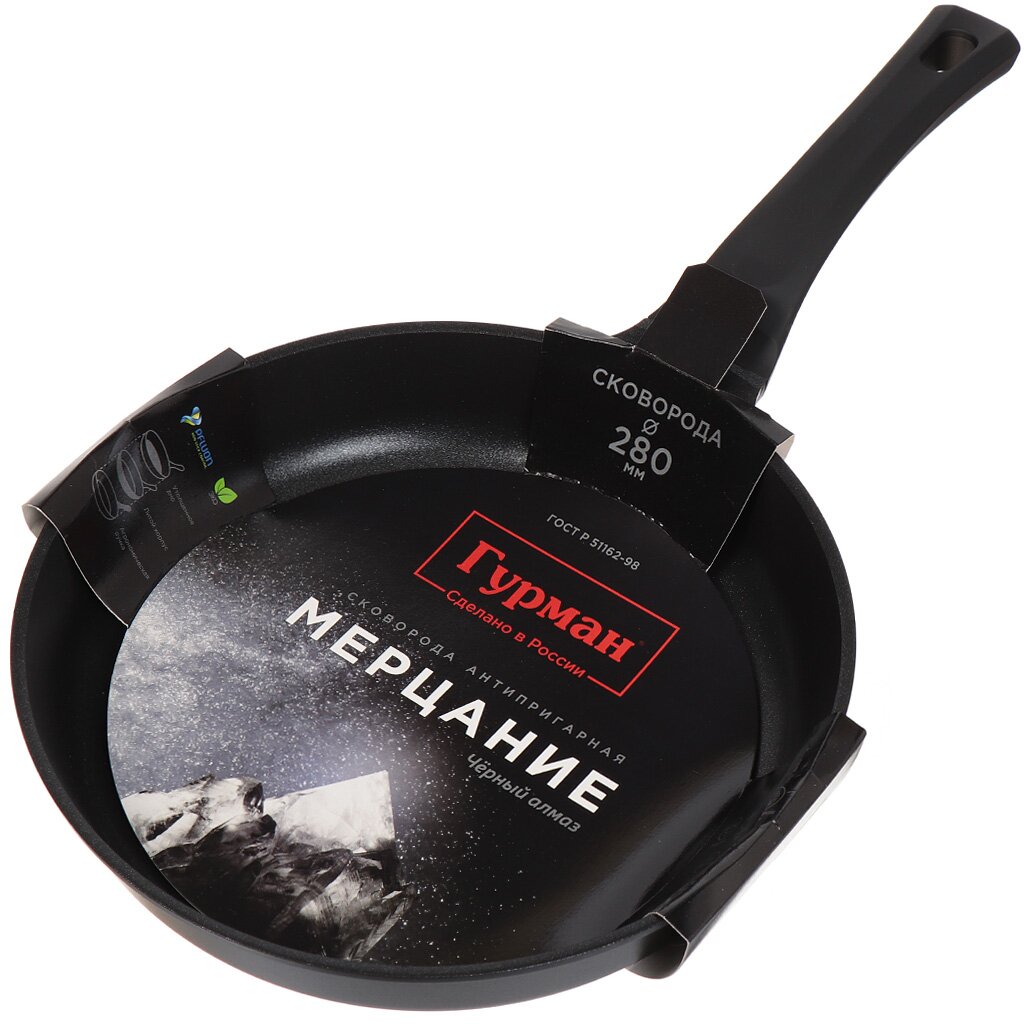 Сковорода выполнена литьем вручную из пищевого алюминия и имеет сверхпрочное семислойное антипригарное покрытие, безопасное для здоровья. Антипригарное покрытие обладает высокой прочностью к истиранию, что увеличивает срок службы сковороды в 5 раз. Форма сковороды обеспечивает устойчивость к деформации при длительном использовании. Дно оптимальной толщины 5 мм способствует равномерному распределению тепла для наилучшего приготовления ваших блюд. Сковорода имеет удобную ручку, которая не нагревается при эксплуатации. Посуда легко и быстро моется благодаря гладкой непористой поверхности. Сковорода не содержит PFOA, при нагревании не выделяются вредные токсичные и канцерогенные вещества.