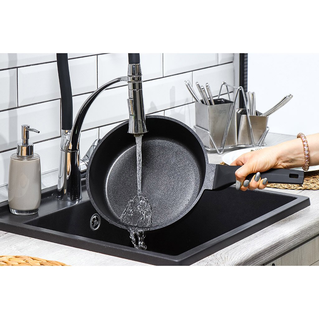 Выполненная из литого алюминия сковорода Гурман Verde благодаря быстрому нагреву поспособствует сокращению времени приготовления пищи и экономии энергии. Антипригарное покрытие сковороды при термической обработке не выделяет вредных химических веществ, порадует вас прочностью и долговечностью.
