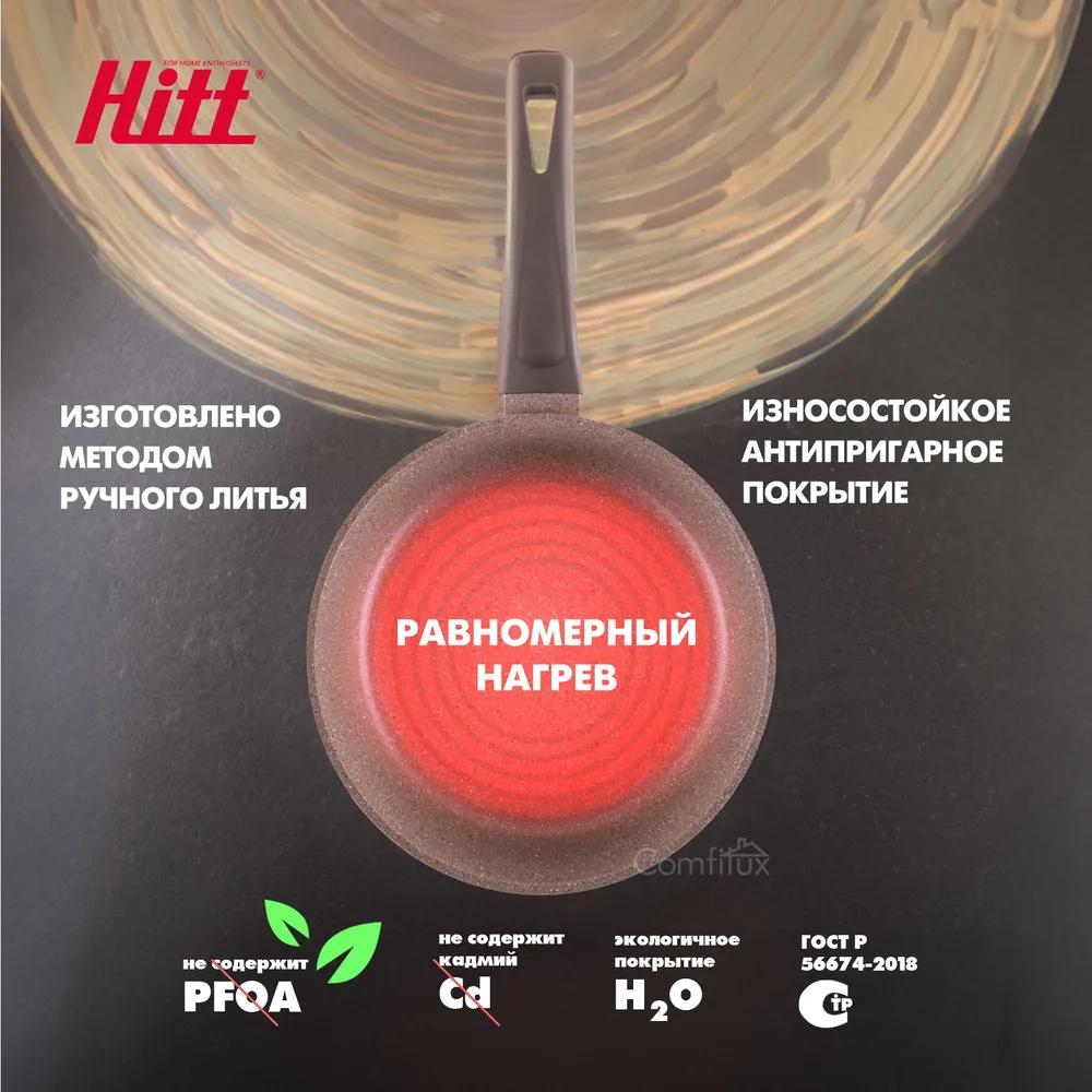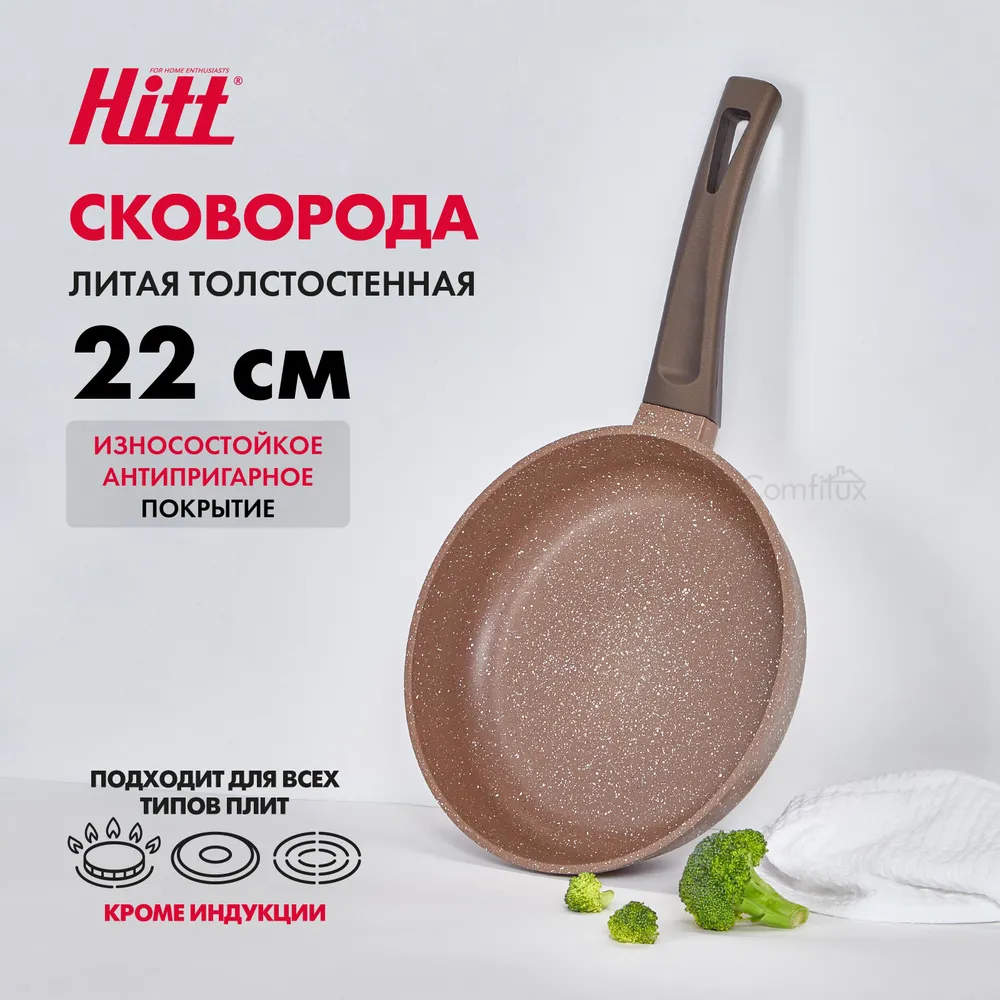 Сковорода изготовлена из высококачественного литого алюминия, что обеспечивает не только прочность конструкции, но и отличную теплопроводность.