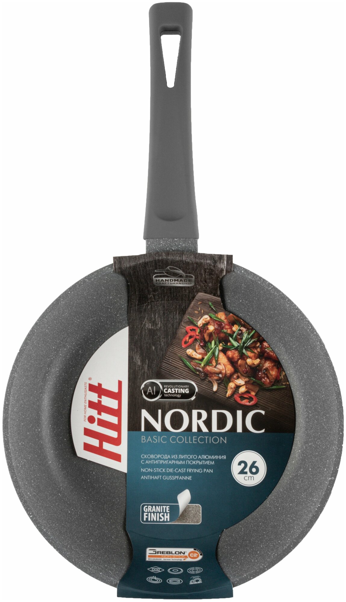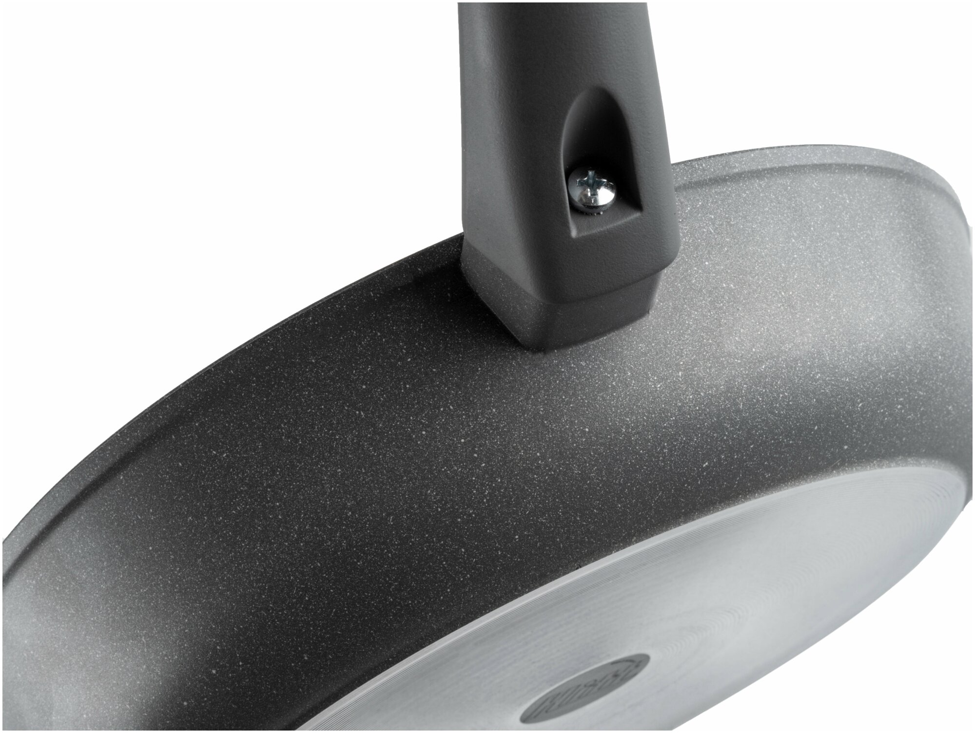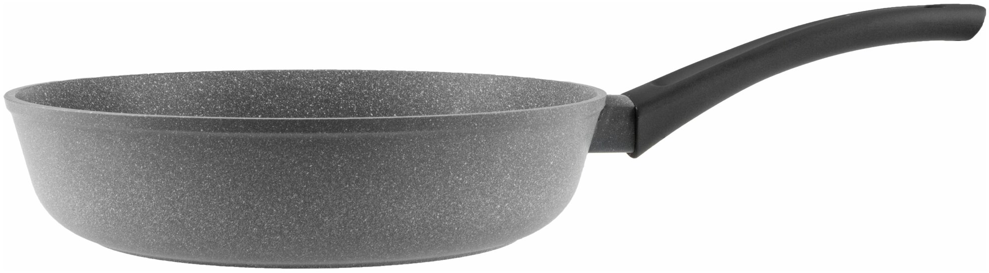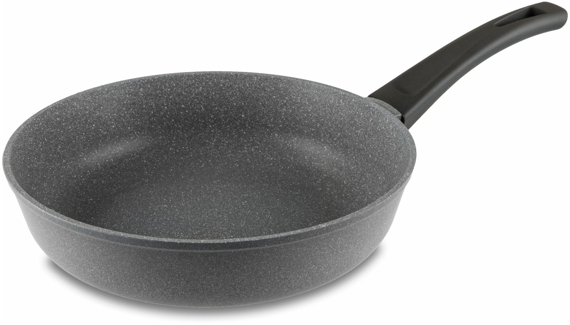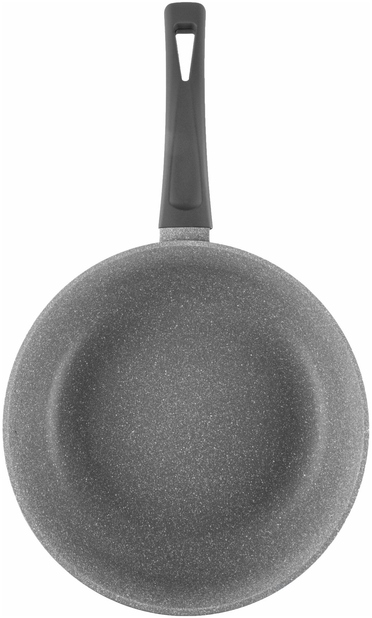 Обладает прекрасными техническими характеристиками: толщина дна 5 мм, толщина стенок 3,5 мм, высокий борт, отличное двухслойное антипригарное покрытие немецкой марки Greblon C2+ с эффектом гранитной крошки.