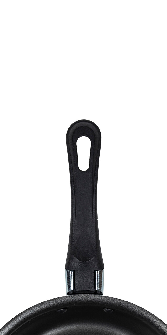 Прочный корпус из штампованного алюминия с эргономичной бакелитовой ручкой делает использование сковороды удобным и безопасным.