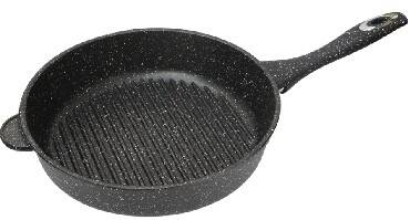 Сковорода-гриль а/п литая 28см, Комфорт, черный гранит, КАТЮША, арт.3328 Сковорода изготовлена из литого алюминия. Имеет современное экологически безопасное многослойное покрытие, которое обеспечивает превосходный внешний вид и великолепные условия эксплуатации. Обладает повышенной теплоемкостью.Толщина стенок и дна: 4,0/6,0 мм, что обеспечивает быстрый и равномерный нагрев. Внутренний диаметр дна – 23,0смВысота стенок внутренняя и внешняя 6,3/6,9 см. Для сковороды подходит любая крышка 28 диаметра (не входит в комплект). Ручка имеет элегантный дизайн.Сковорода может быть использована на газовых, электрических, керамических и галогеновых плитах. Можно мыть в посудомоечной машине.