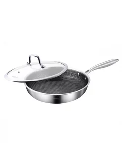 Высококачественная нержавеющая стальИндукционное дноУникальная гравировка (СОТЫ)Поверхность стойкая к царапинамЗеркальная полировкаМожно использовать в посудомоечной машинеТермостойкие клепаные ручкиЖаропрочная стеклянная крышка с паровыпуском