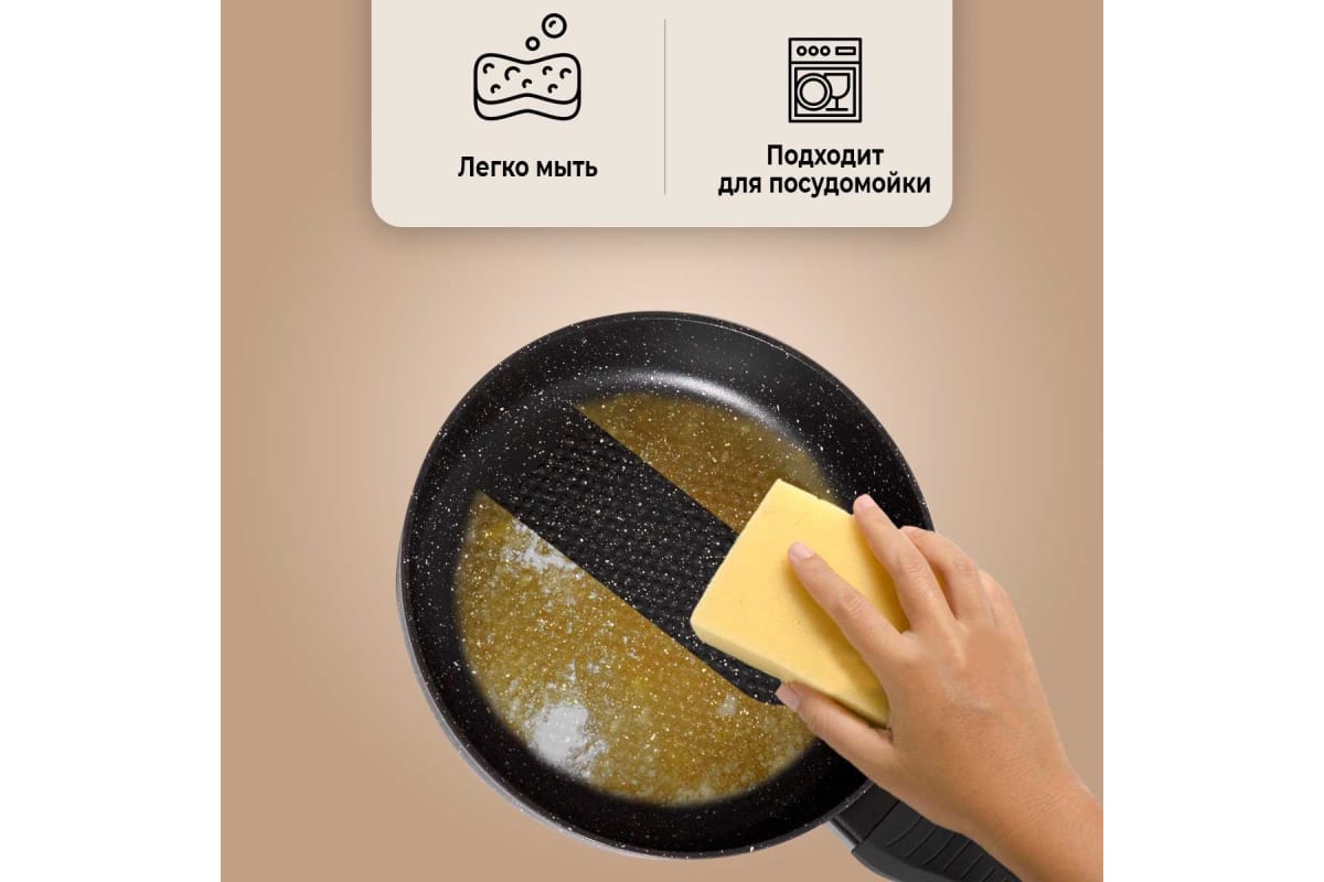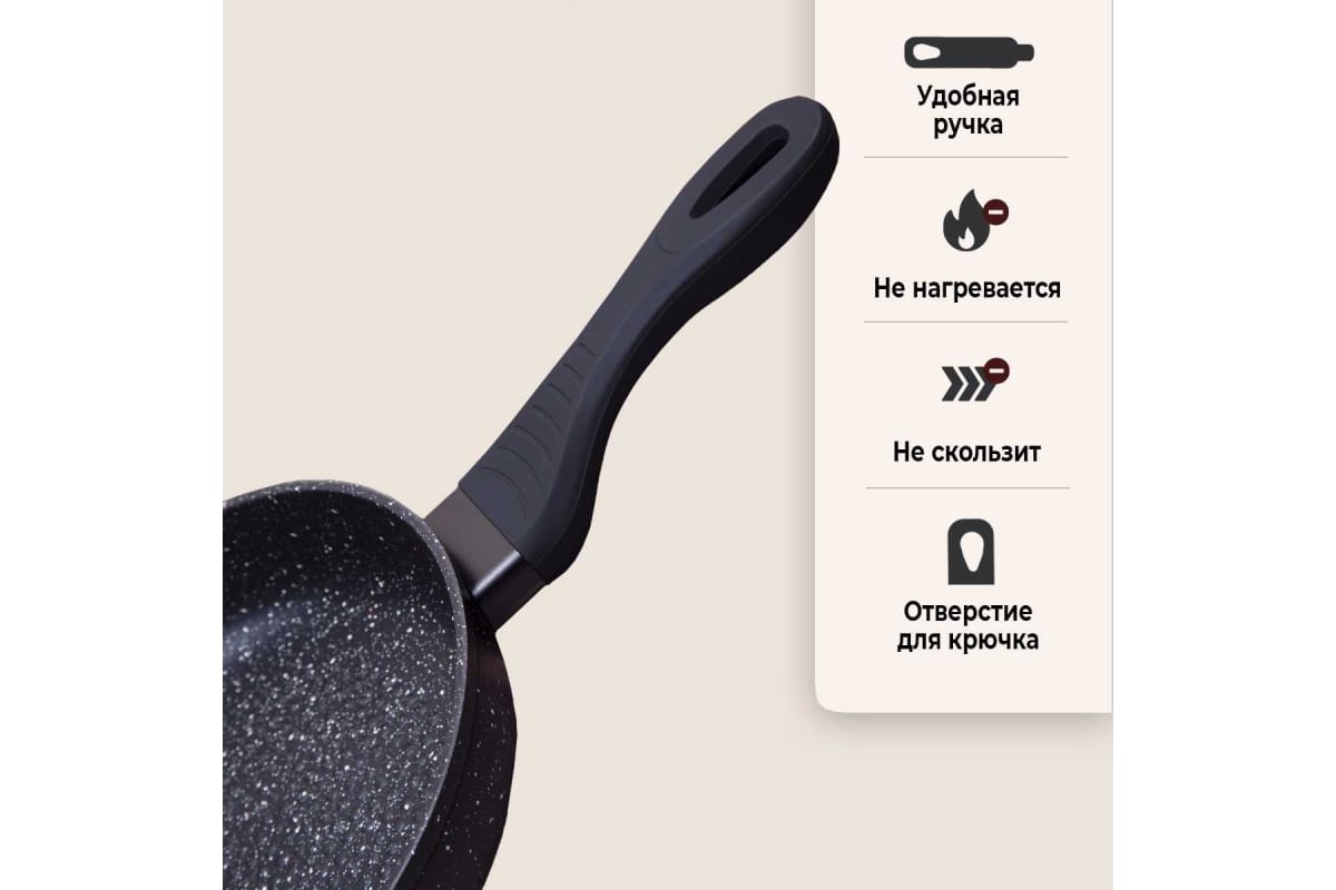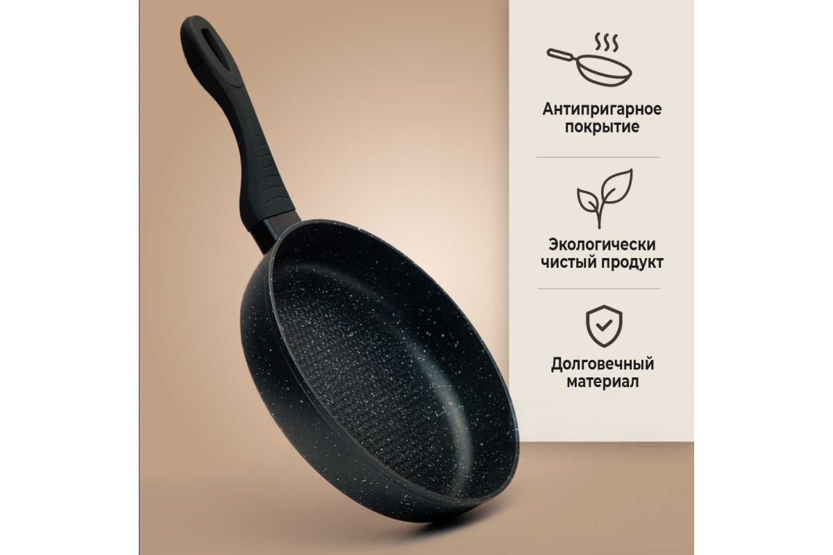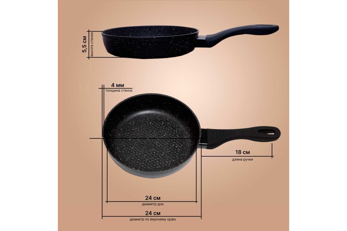 Глубокая сковорода Kelli KL-4600B-24, диаметром 24 сантиметров с антискользящей фиксированной ручкой - идеальный выбор для приготовления вкусных и полезных блюд. Благодаря своему антипригарному гранитному покрытию, вы можете жарить и тушить различные продукты, используя минимальное количество масла или вообще без него. Эта сковорода подходит для приготовления пасты, плова, омлета, котлет, сырников и отбивных. Высокие бортики делают ее идеальной для блюд с сохранением жидкости, например, рагу и соусов. Технология изготовления Eco Friendly обеспечивает безопасность использования для здоровья. Сковородка подходит для всех видов плит - газовых, электрических, индукционных и стеклокерамических - и ее можно мыть в посудомоечной машине. Черный цвет с мраморным эффектом придает ей стильный вид и делает ее украшением вашей кухни. Классическая глубокая сковорода для семьи может послужить приятным подарком на любой праздник.