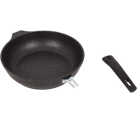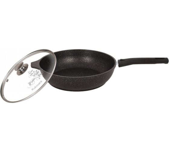 Сковорода Kukmara 260/60 мм, со съемной ручкой, стеклянной крышкой, АП темный мрамор смт26604а изготовлена из литого алюминия и покрыта инновационным антипригарным мраморным покрытием нового поколения на водной основе, усиленным сверхтвердыми частицами минералов.