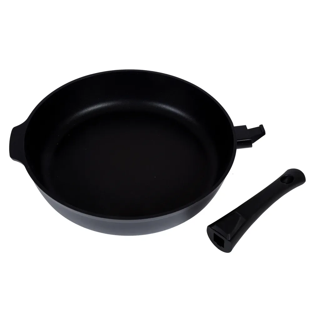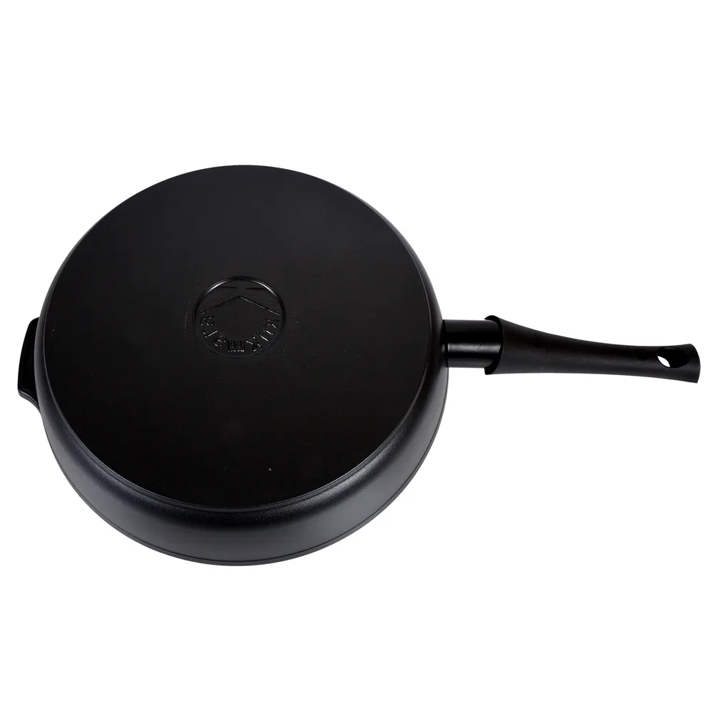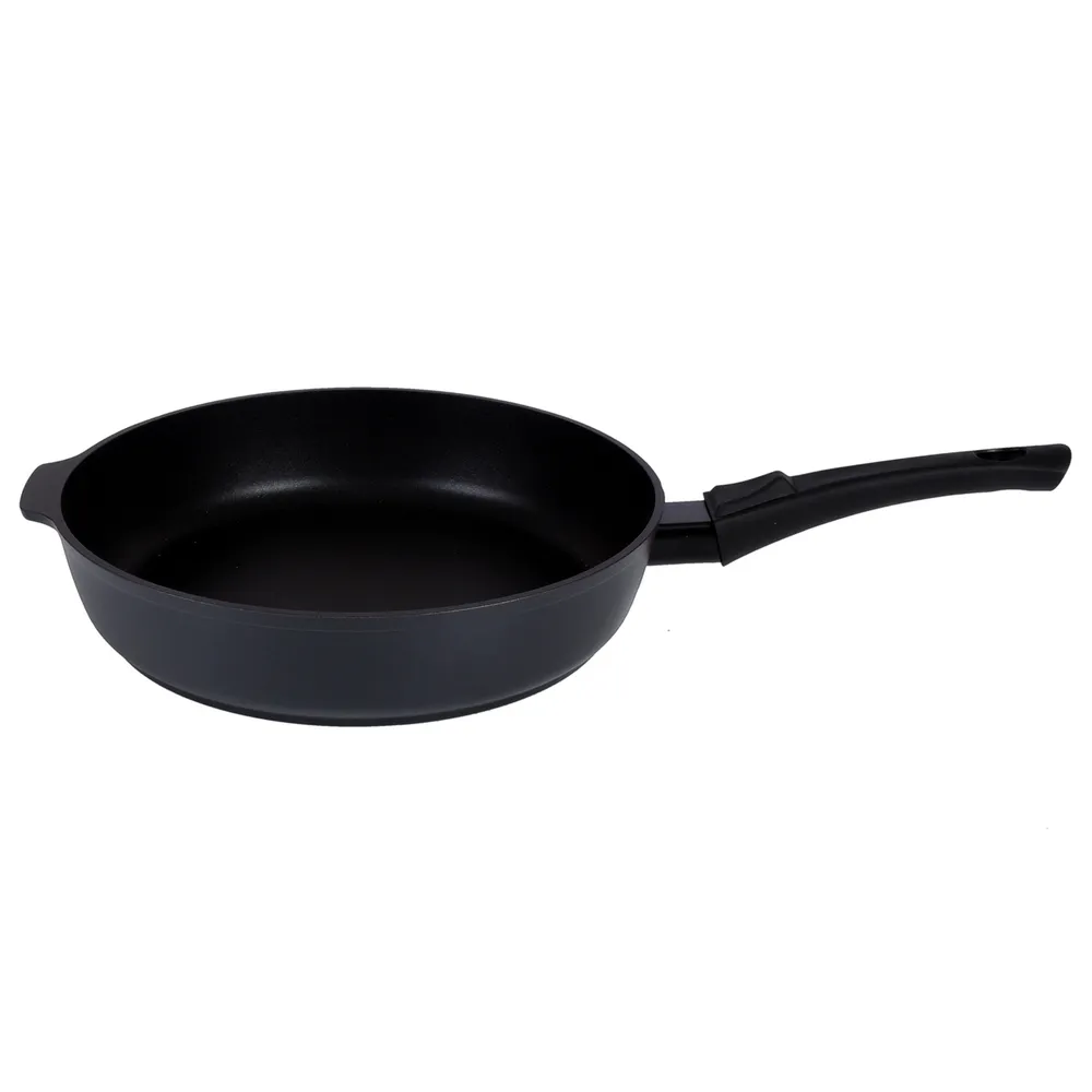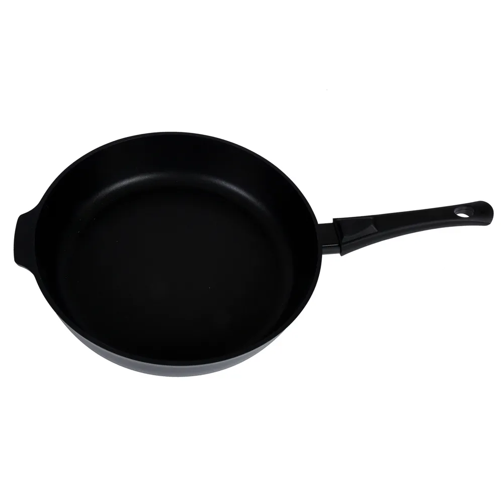 значительная толщина стенок и дна исключает деформацию корпуса сковороды, гарантирует ее долговечность, обеспечивает необходимую прочность покрытия;