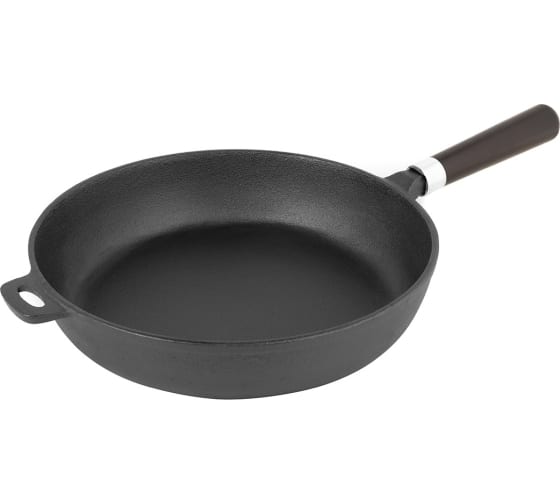 Сковорода Lara черная, чугун, 28.5х6 см, толщина 4 мм, индукция, берёзовая ручка, прихватка-упор LR01-89 используется в процессе готовки.