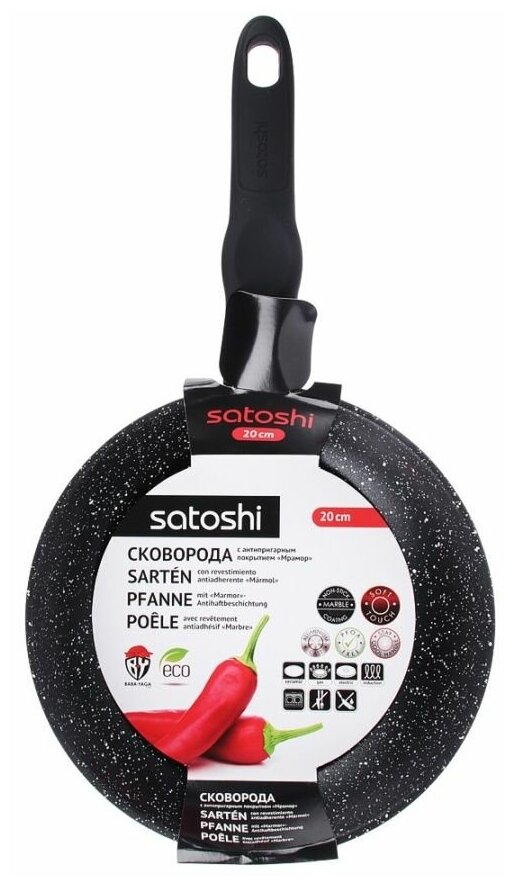 Сковорода диаметром 20 см выглядит очень привлекательно и стильно, приятный цвет посуды украсит современную кухню. К тому же посуда с мраморным антипригарным покрытием при правильном использовании прослужит не один год. Также на такой сковороде можно готовить практически без масла, пища не пригорит и не прилипнет к стенкам. Подходит для всех типов плит, включая индукционные. Стоит купить такую посуду, чтобы забыть о сложностях готовки.