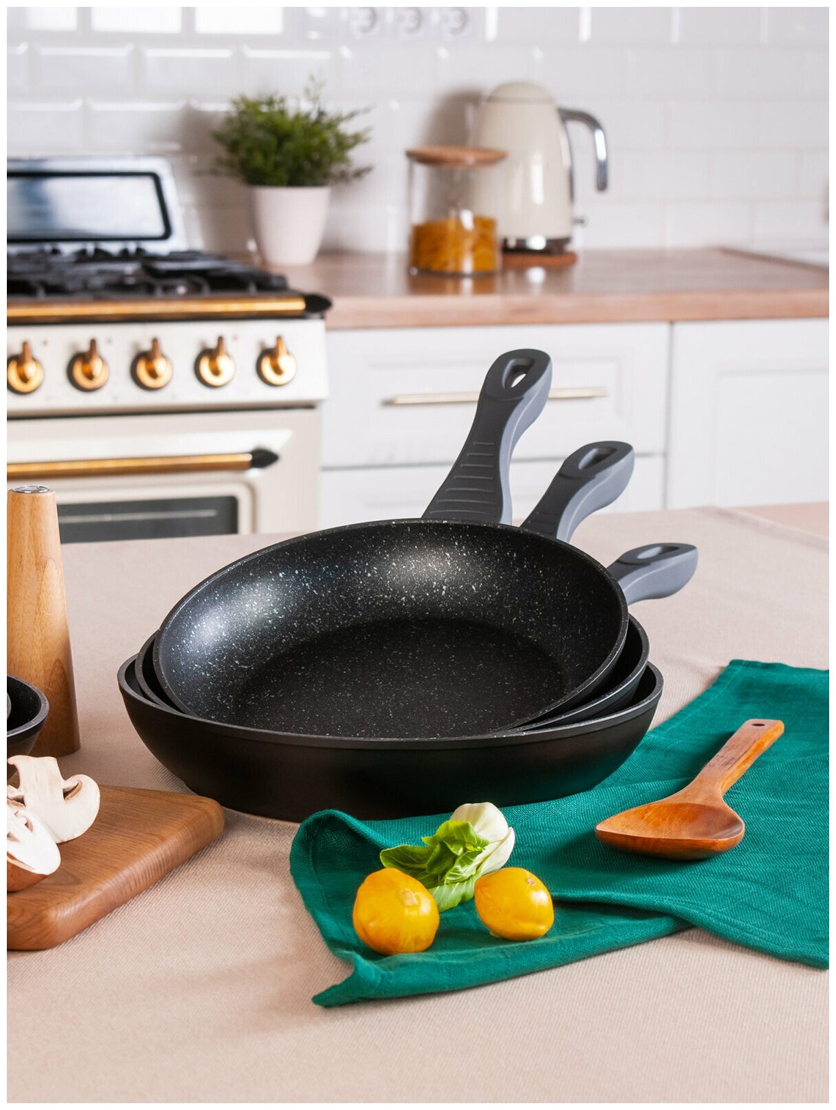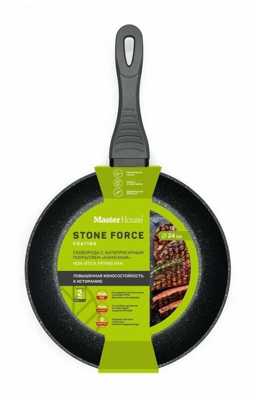 Прочное и долговечное антипригарное покрытие. Легко моется. Позволяет готовить с минимальным количеством масла. Покрытие не содержит вредных кислот (PFOA) а корпус изготовлен из пищевого сплава. Безопасно для здоровья. Прочное дно и корпус сковороды не подвержены деформации и обеспечивают равномерный нагрев. Диаметр дна и высота борта комфортны для готовки любых блюд. Подходит для всех видов плит, включая индукционную. Не подходит для мытья в посудомоечной машине. Высокое качество гарантировано