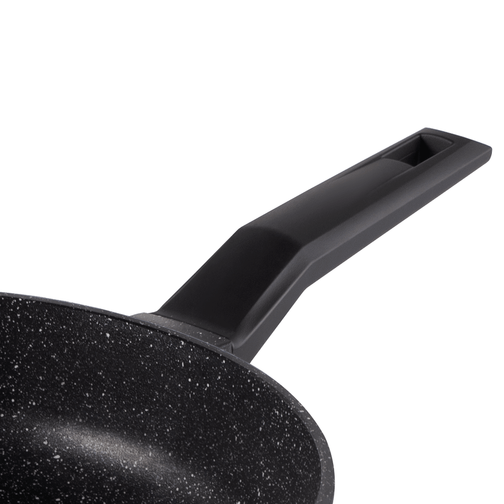 Сковорода с эффектным мраморным покрытием и современной ручкой в универсальном цвете, будет отлично сочетаться с любой кухней.