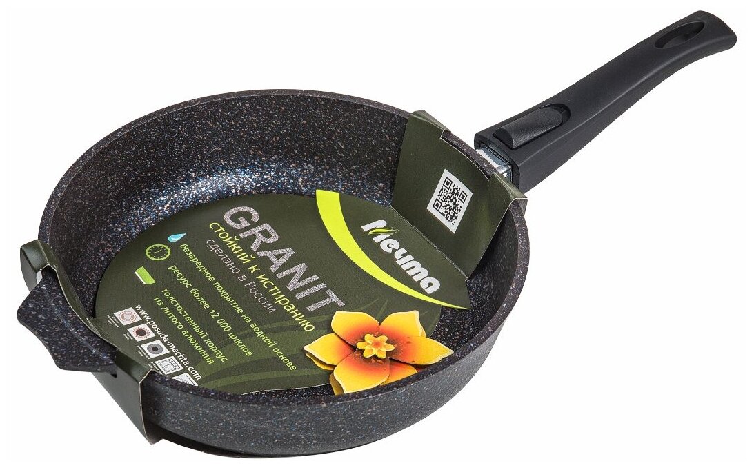 материал ручки: бакелит; марка антипригарного покрытия Greblon, толщина покрытия до 55 микрон