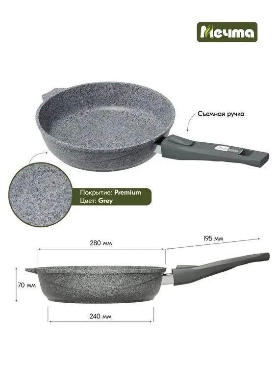 Особенности посуды: Можно мыть в посудомойке, Ненагревающиеся ручки, С толстым дном, Съемная ручка
