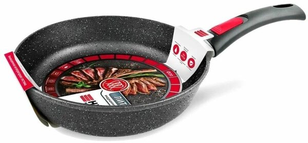 Серия сковород Литая является классикой: безупречно подходит для ежедневного использования, создана из материалов высшего класса безопасности на новейшем оборудовании. Литой алюминиевый корпус сковороды не подвержен деформации и обеспечивает равномерный нагрев. Многослойное антипригарное покрытие c эффектом натурального камня позволяет готовить с минимальным количеством масла и сохранять натуральный вкус продуктов. Антипригарное покрытие на водно-кремниевой основе безопасно, не содержит PFOA (перфтороктановой кислоты).