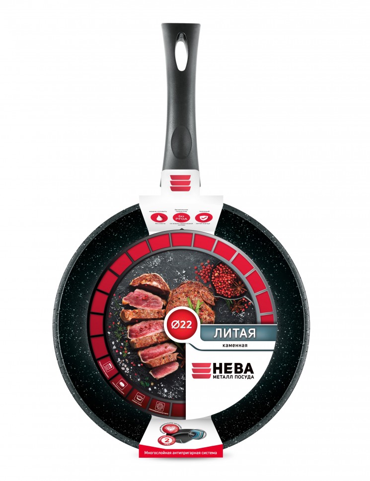 Сковорода Нева Металл Посуда Литая Комфортная НМП7222К 22см алюминий черный без крышки