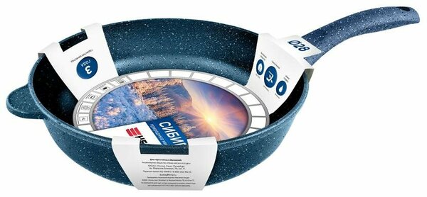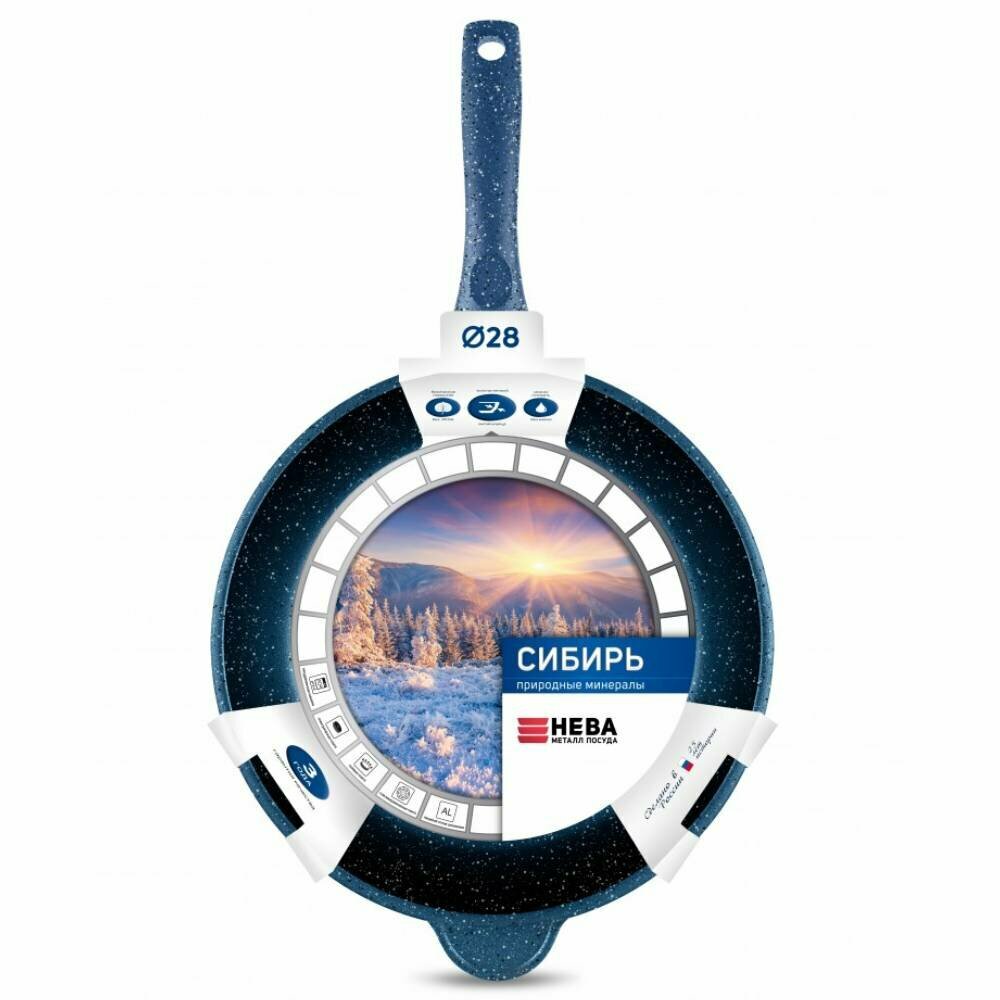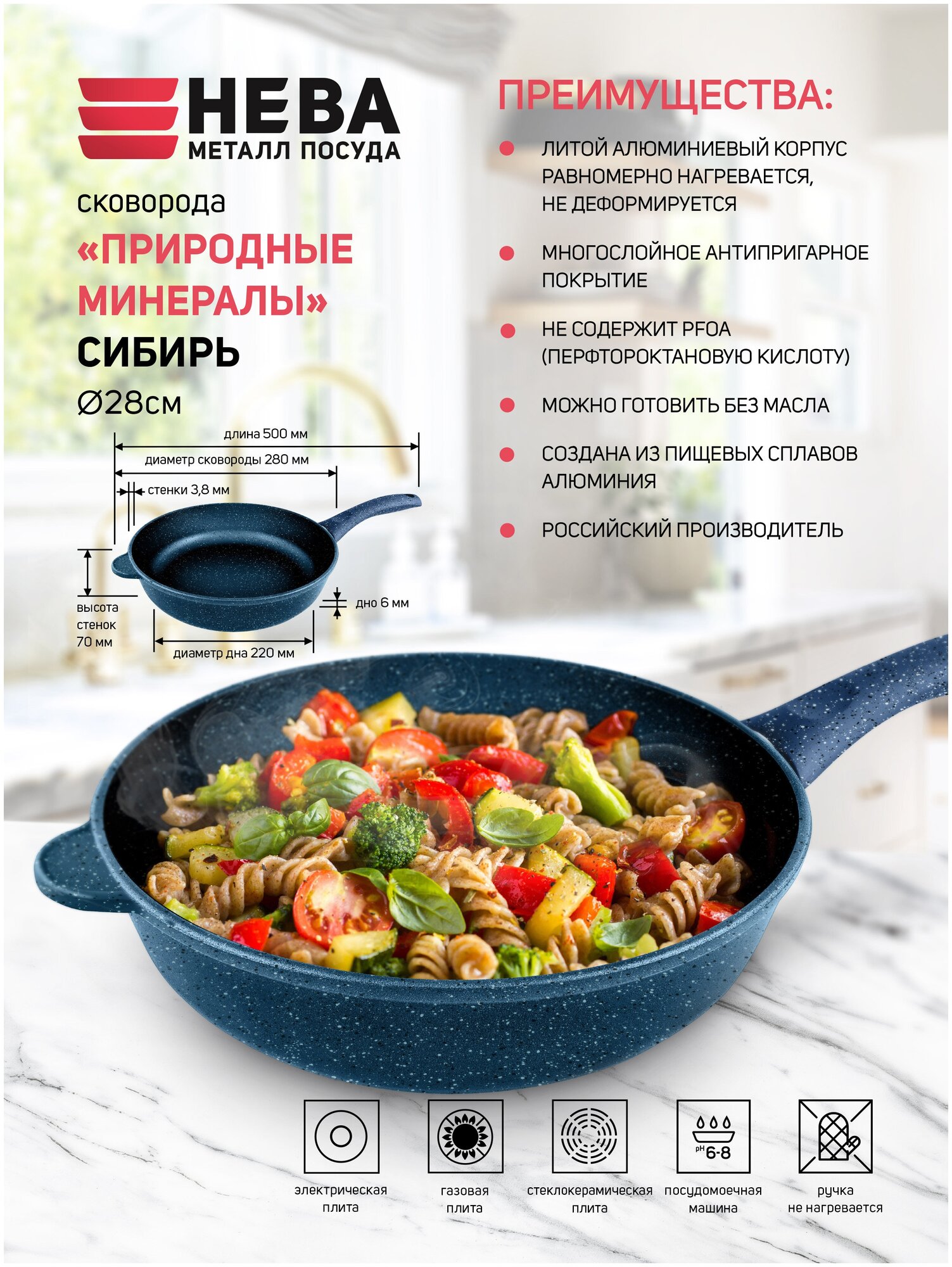 Высококачественная универсальная сковорода 28 см с широким спектром применения, произведенная в России. Нева Металл Посуда. Природные минералы. Линия Сибирь 2428.
