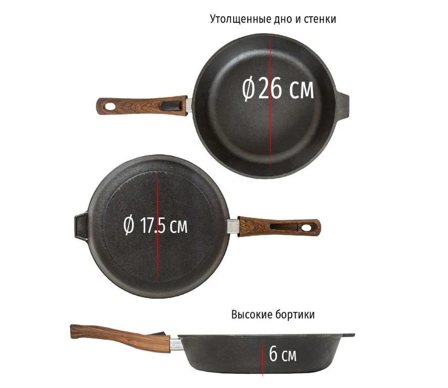 сковорода 26 см, стеклянная крышка, съемная ручка