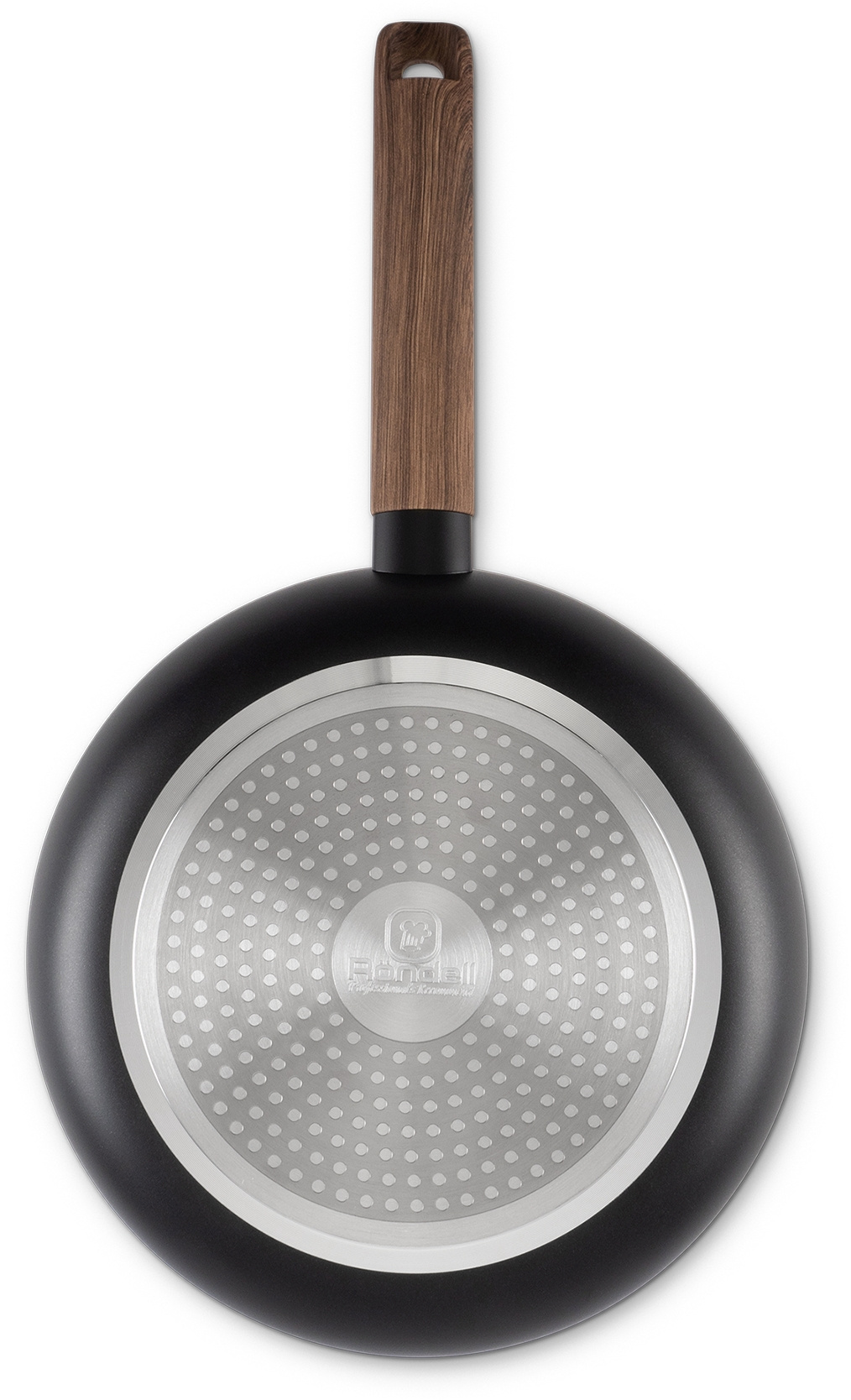 Преимущества: штампованный алюминий, оригинальный дизайн, высокая теплопроводность. Двухслойное износостойкое антипригарное покрытие, не содержит PFOA. Аксессуары: стильные бакелитовые ручки с soft touch покрытием, стилизованные под натуральное дерево.