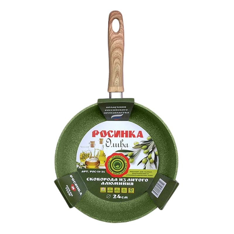 Сковорода глубокая серии ОЛИВА Ø 24 см, высота 6 см, толщина стенок 4 мм, толщина дна 6 мм. Внутреннее многослойное антипригарное покрытие QuanTanium с дизайном Гранитная крошка, внешнее антипригарное покрытие. Литой алюминий. При приготовлении еды разрешается использовать металлические столовые приборы.