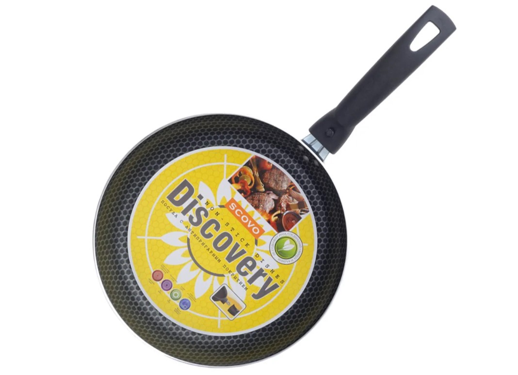 Сковорода Scovo Discovery может показаться «серой мышкой», но на самом деле она – кухонная фея. С её помощью обычный процесс готовки превращается в удобный и быстрый. Диаметр 22 см делает эту сковороду универсальной – в ней можно приготовить овощи, гарнир или поджарить рёбрышки и другие мясные блюда. Антипригарное покрытие позволяет использовать минимум масла, что хорошо отражается на фигуре и здоровье.