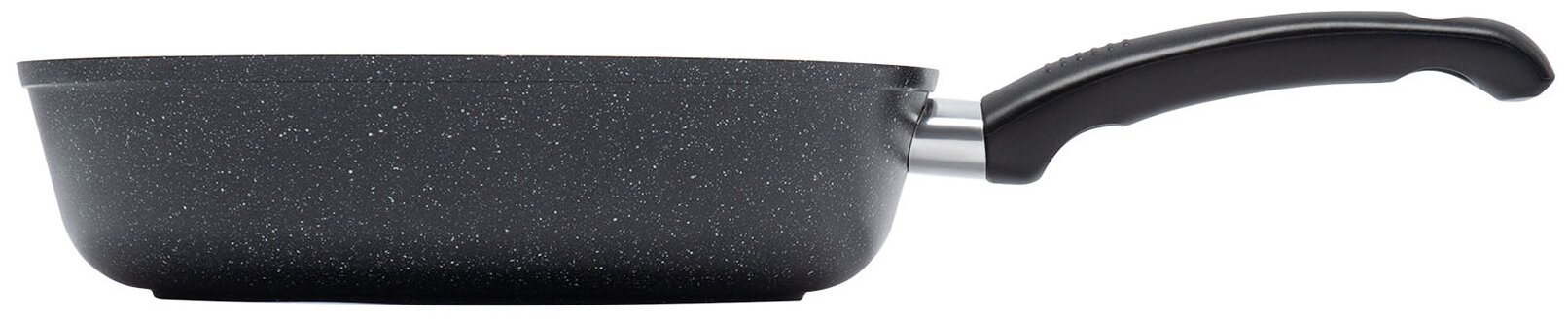 Несъёмная ручка из бакелита не скользит, не нагревается и позволяет хранить сковороду в вертикальном положении на стене. Эта опция даёт возможность экономить место на кухне. Даже в условиях ограниченного места данная модель прекрасно впишется в интерьер.Общие характеристики