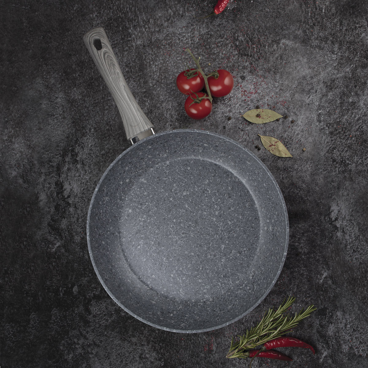 Трехслойное антипригарное покрытие не содержит PFOA и позволяет готовить пищу с минимальным количеством масла.