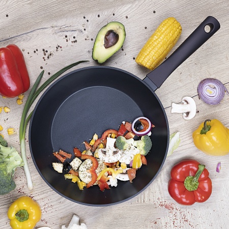 Антипригарное покрытие не содержит PFOA. Высокие антипригарные свойства покрытия позволяют готовить пищу с минимальным количеством масла.