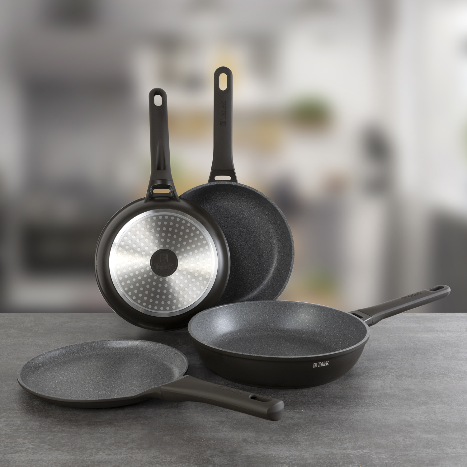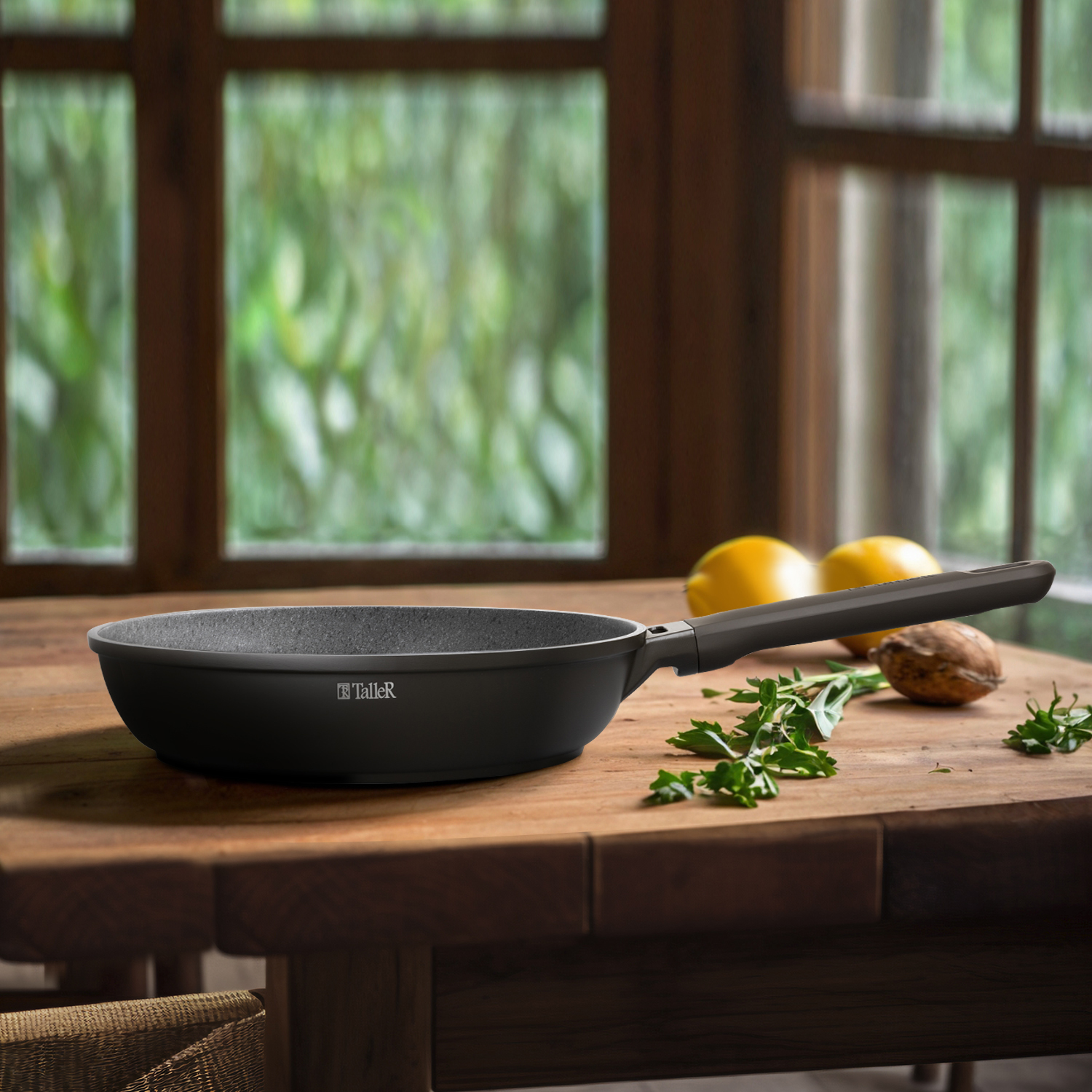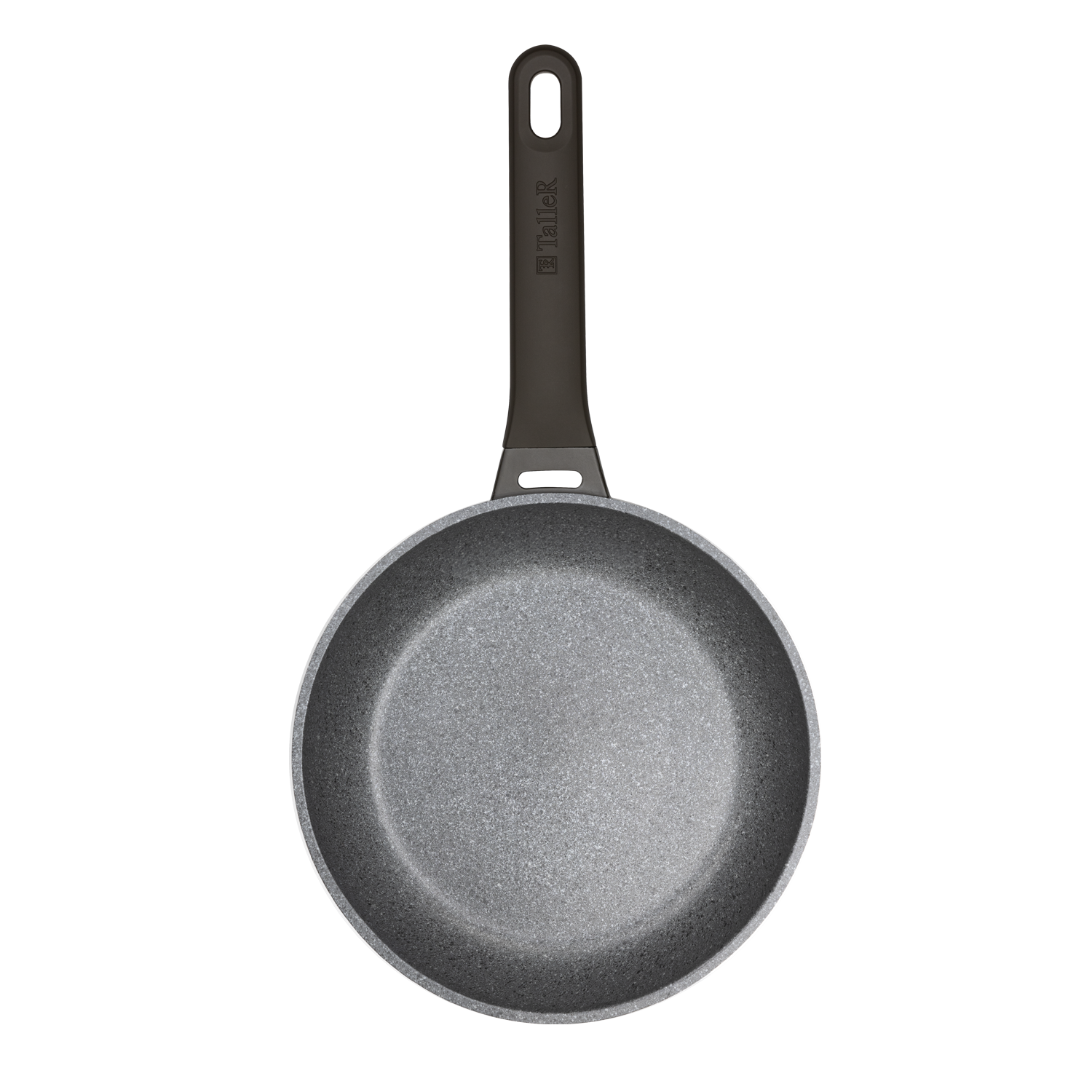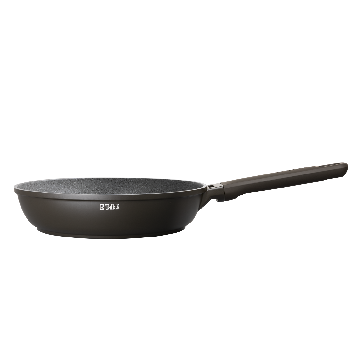 Характеристики Материал — алюминий Диаметр, см — 24 Толщина дна, мм — 4,3 Диаметр дна, см — 18,6 Высота, см — 5,5 Индукционная плита — подходит Цвет — серый, темно-коричневый