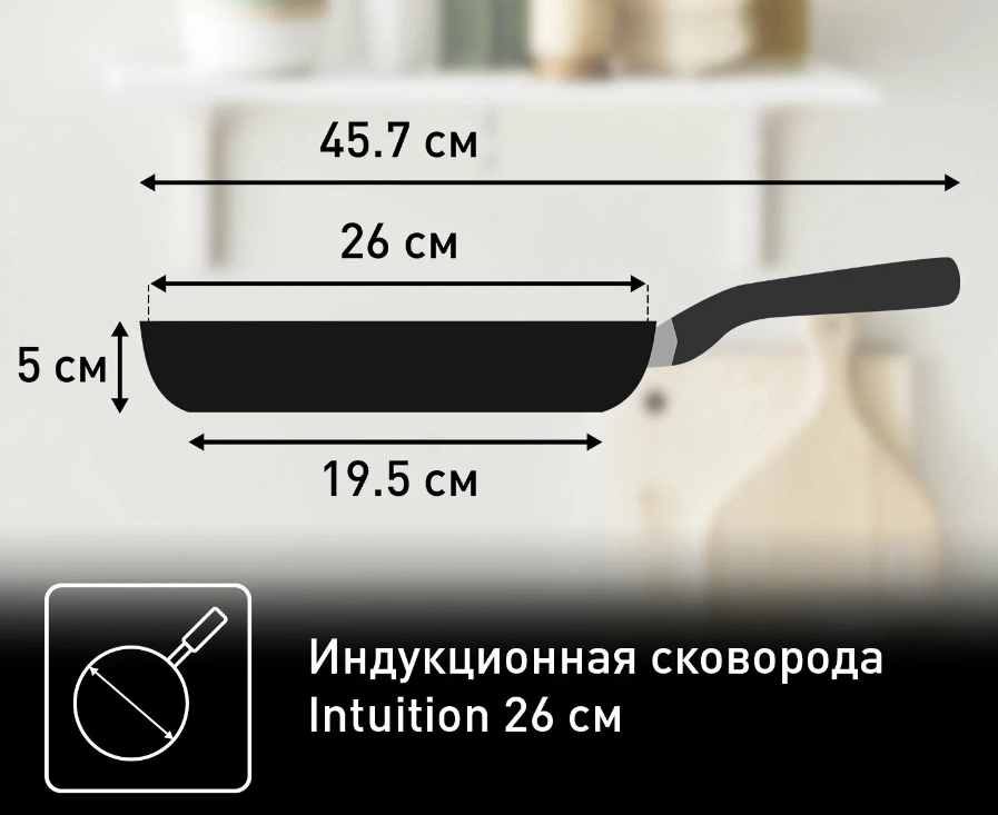 Сковорода с общим диаметром 26 см может эксплуатироваться на всех видах плит, включая индукционные. Модель отличается круглой формой. Универсальная посуда подходит для обжарки, томления, тушения продуктов. Антипригарное покрытие препятствует прилипанию. Дно обладает индикацией нагрева ThermoSpot, демонстрирующей готовность к использованию.
