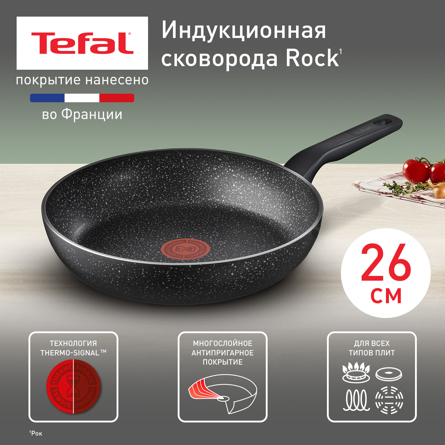 Сковорода Tefal Rock 26 см 04235126 - это идеальный выбор для создания кулинарных шедевров на вашей кухне.