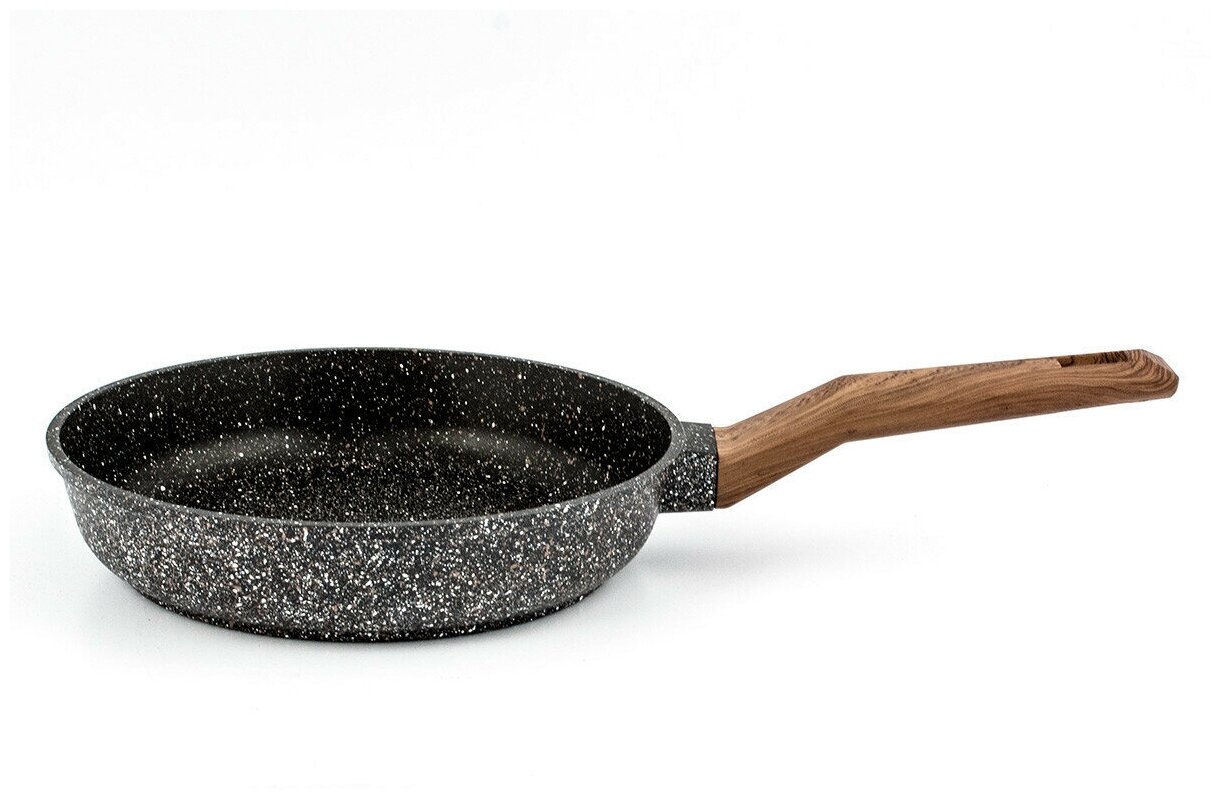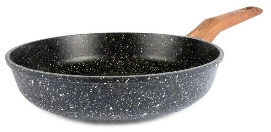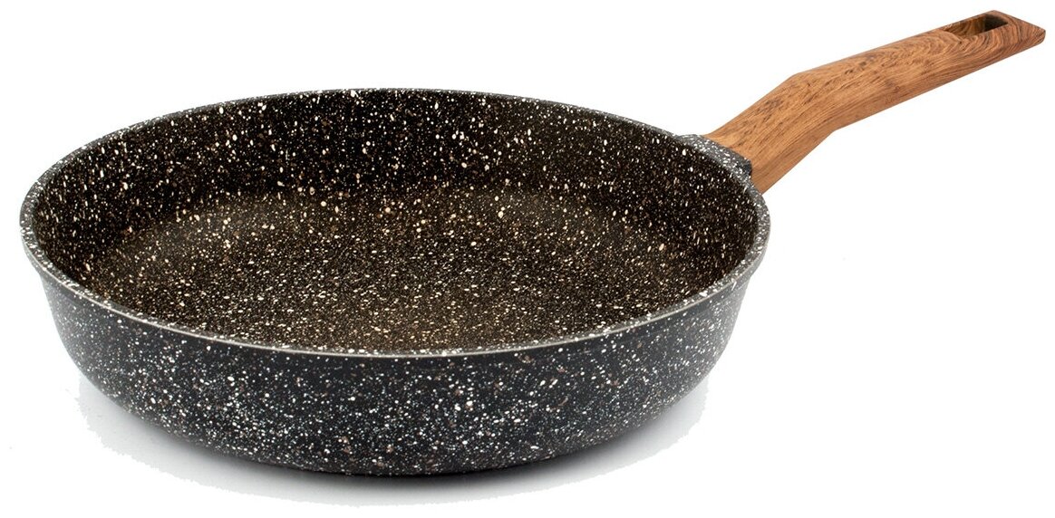 Внешний вид посуды серии «El Terra» торговой марки «TimA» никого не оставит равнодушным. Благородный гранитный цвет сковород достигается нанесением коричневой и белой крапушек, что обеспечивает его визуальное сходство с природным камнем. Дно сковороды полностью закрашено, что облегчает уход за сковородой и исключает повреждение варочных панелей.