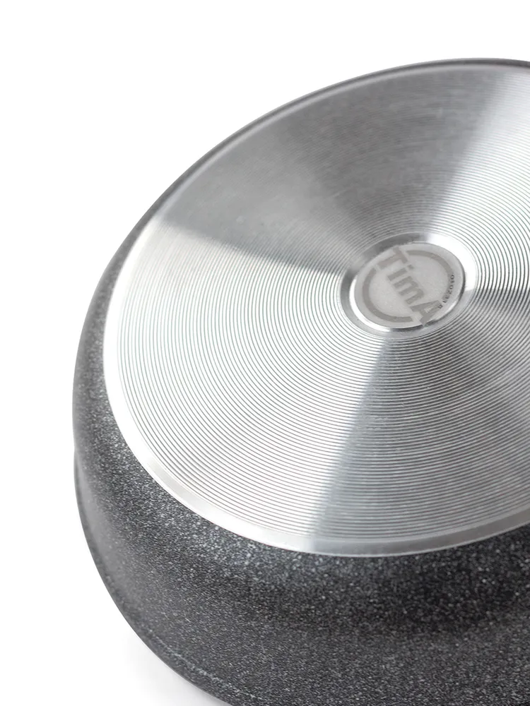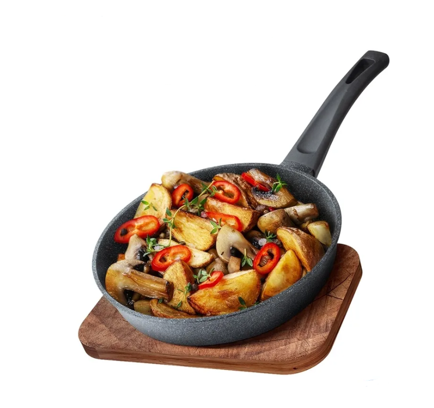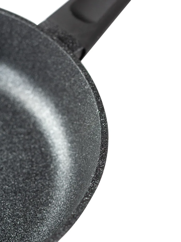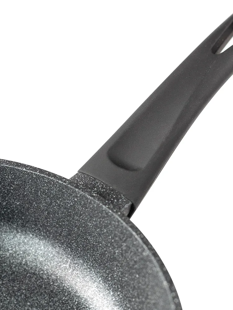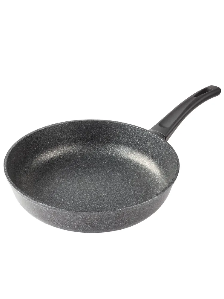 Сковорода с антипригарным покрытием 28 см изготовлена из пищевого алюминия современным методом литья с кристаллизацией под давлением.