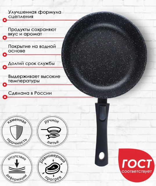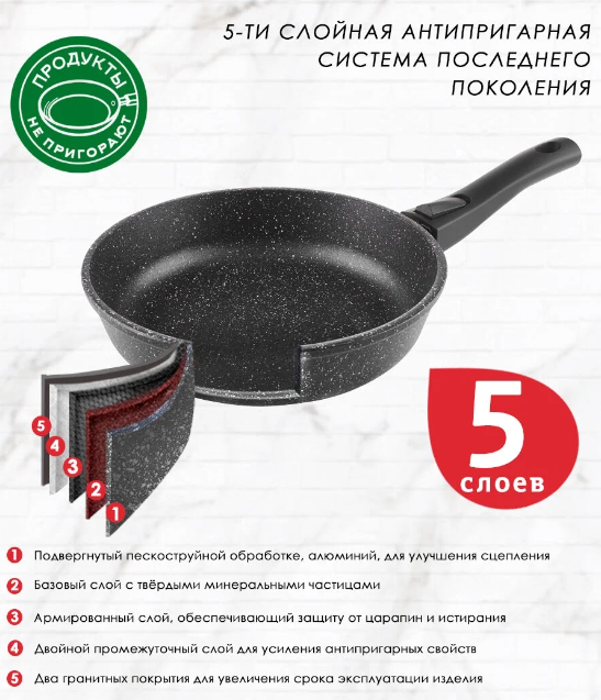 За счет антипригарного покрытия пища не пригорает даже при небольшом количестве масла.