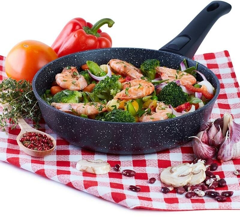За счет антипригарного покрытия пища не пригорает даже при небольшом количестве масла.
