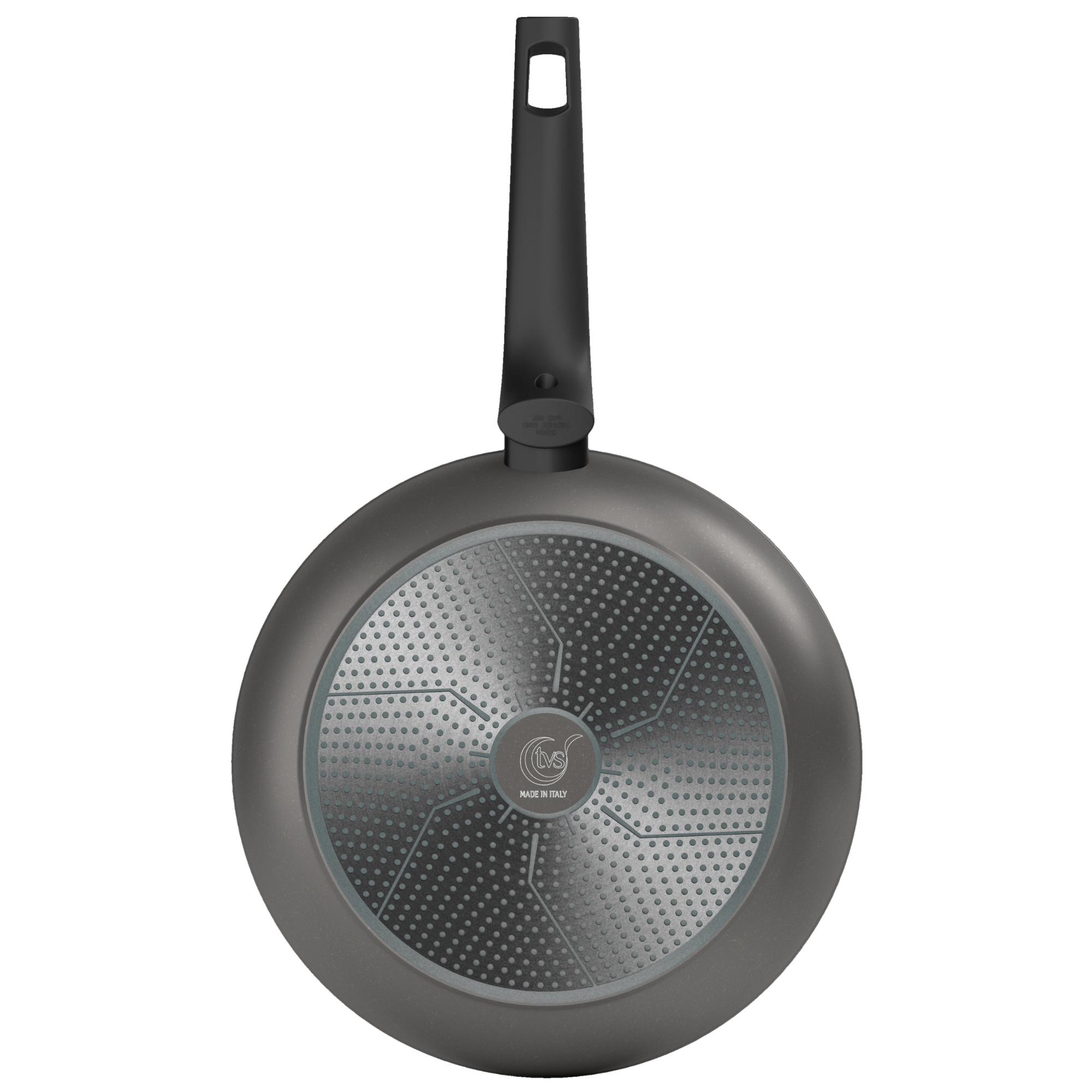 Покрытие выполнено из титана высокого качества под названием Titan Resistance, это покрытие обеспечивает высокие антипригарные свойства данной модели и высокие прочностный характеристики. Благодаря этому, приготавливаемая пища сохраняет все свои полезные вещества и вкусовые качества. Важно отметить, что эта модель предназначена для использования на любых видах плит, в том числе индукционных, благодаря специальному дну толщиной 4 мм. Изделие имеет серый цвет и высоту бортов равную 6 см. Производство осуществляется в Италии, где особое внимание уделяется качеству продукции. Эта сковорода обладает пожизненной гарантией, что подтверждает ее надежность и долговечность. Уход за сковородой такой же простой как и использование. Ее можно мыть в посудомоечной машине.Сковорода TVS Titan Elite Induction c суперпрочным титановым покрытием Titan Resistance.