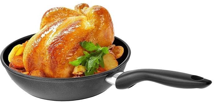 Сковорода литая,универсальный корпус, толщина дна 4 мм, бортов 2,5 мм, высокие борта. Антипригарное покрытие Xylan с двойным усилением армировано смесью частиц высокой прочности и обладает отличной абразивной износоустойчивостью. Высокие стенки обеспечивают удобство в приготовлении блюд.