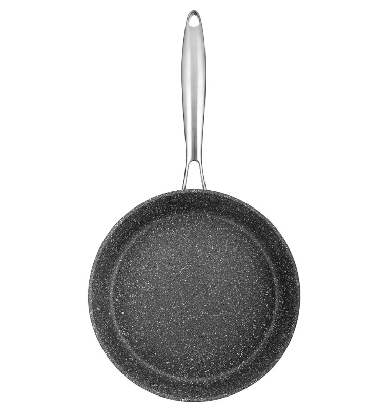 Утолщённый кованый алюминий обеспечивает равномерный прогрев и качественную обжарку. Не нагревающаяся ручка из нержавеющей стали с сатинированной обработкой на клёпочном надёжном креплении. Внутреннее двухслойное антипригарное покрытие. Внешнее термостойкое покрытие. Можно пользоваться деревянными, силиконовыми и пластиковыми лопатками. Дно работает на любых типах плит. Можно готовить в духовке! Пригодна для мытья в посудомоечной машине.