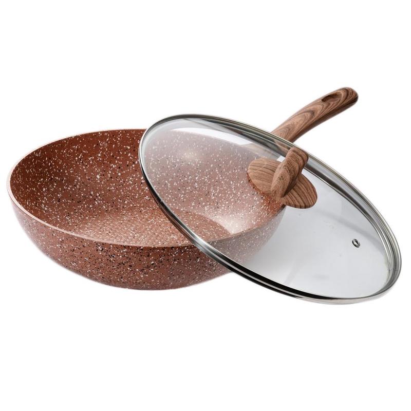 Бренд Vissner Тип сковорода Серия Galaxy Тип сковороды обычная Диаметр 24 см Материалы изготовления Материал крышки стеклянная Материал корпуса кованый алюминий Материал ручек с покрытием Soft Touch "под дерево" Антипригарное покрытие есть, мраморное Дополнительно Особенность рифленое дно Подходит для посудомоечных машин да Совместимость с духовкой нет Совместимость с плитами для всех типов плит, в том числе для индукционных