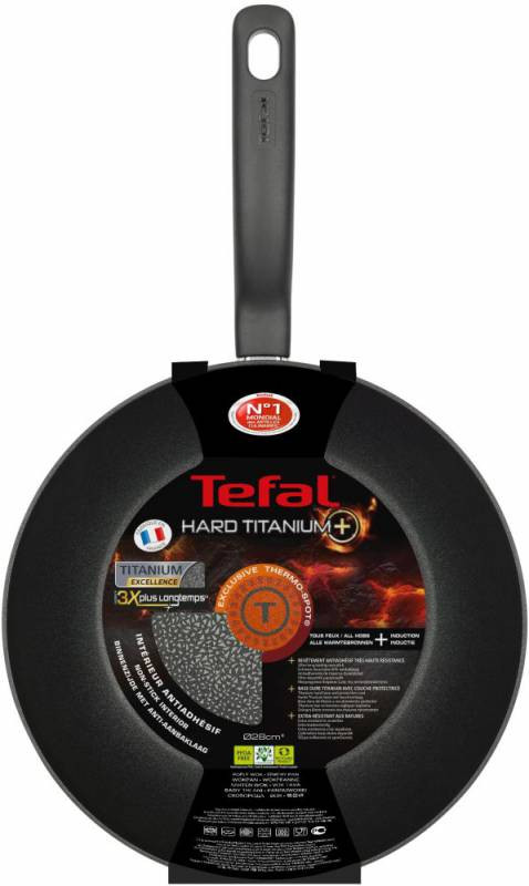 Описание: Сковорода WOK из кованного алюминия - это незаменимая сковорода для приготовления блюд азиатской кухни. Благодаря передовым технологиям сковороды из кованного алюминия Tefal серии Hard Titanium+ представляют совершенство как в плане долговечности, так и в результатах готовки.