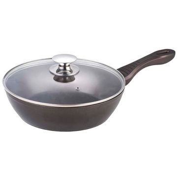 Глубокая сковорода со стеклянной крышкой Ø 24 см, ВНУТРЕННЕЕ И ВНЕШНЕЕ АНТИПРИГАРНОЕ ПОКРЫТИЕ "TITANIUM", высококачественный алюминий, прорезиненная ручка в цвет корпуса, ИНДУКЦИОННОЕ ДНО, ПОДАРОЧНАЯ УПАКОВКА.
