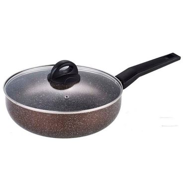Глубокая сковорода со стеклянной крышкой Ø 28 см, ВНУТРЕННЕЕ И ВНЕШНЕЕ КАМЕННОЕ ПОКРЫТИЕ "GRANITE", штампованный алюминий, бакелитовая ручка, ИНДУКЦИОННОЕ ДНО, ПОДАРОЧНАЯ УПАКОВКА.