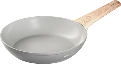 Сковорода. Кованый алюминий. Бакелитовая ручка с мягким напылением. Двухслойное керамическое антипригарное покрытие Excilon 30-35мкм. Диаметр по верху (крышка): 22см, высота бортика 4,5мм, толщина дна 2,6 мм. Выдерживает более 3000 циклов на истирание. Подходит для всех видов плит, в том числе для индукционной.