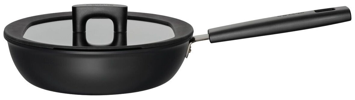 материал крышки: стекло; материал ручки: бакелит; марка антипригарного покрытия Hardtec Superior; крышка с бесшумными силиконовыми краями, с функцией выхода пара и слива воды; не содержит PFOA