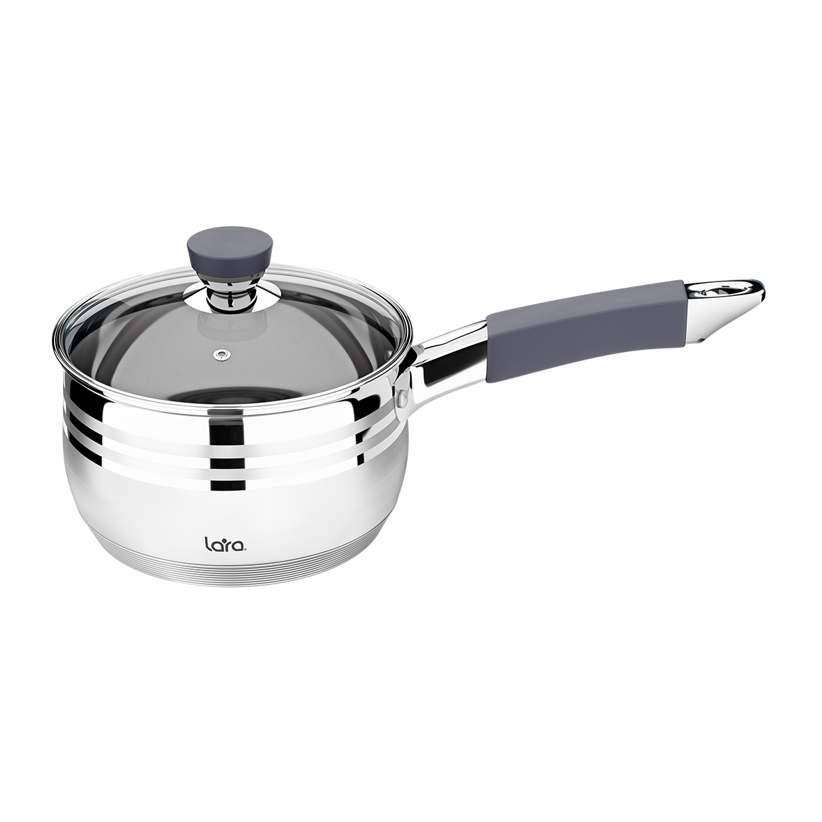 Крышка с паровыпуском изготовлена из жаропрочного стекла и имеет стальной обод С-формы, который плотно прилегает к стенкам сотейника.