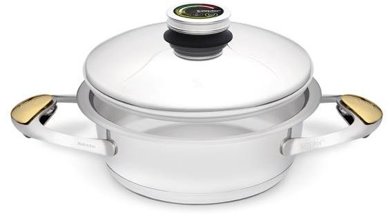 Особенности: Обладает инновационной URA технологией от Цептер - антипригарной поверхностью без применения вредных и канцерогенных покрытий и крышкой с цифровым термоконтроллером которая показывает, когда заданные температура и время приготовления достигнуты.