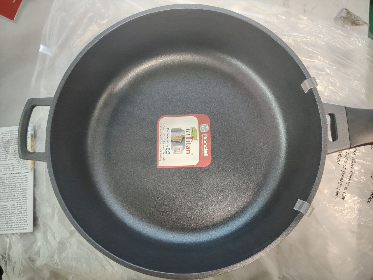 Внутреннее покрытие: TriTitan® - трехслойное, износостойкое антипригарное покрытие на основе титана. Внешнее покрытие: cиликоновый полиэстр, устойчивый к высоким температурам. Аксессуары: прочная бакелитовая ручка анатомической формы.
