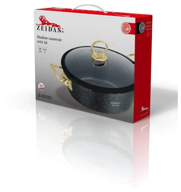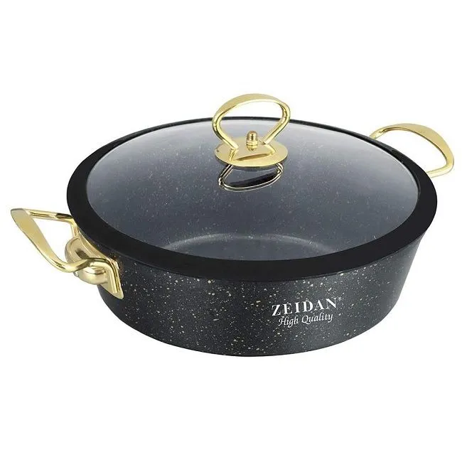 Жаровня Zeidan Z-50382 со стеклянной жаропрочной крышкой, диаметр жаровни 28 см, объем 4,6 литра. Внутреннее и внешнее антипригарное покрытие "GRANITE PFLUON". Алюминий отличается долговечностью и способностью быстро и равномерно нагреваться и аккумулировать тепло, что приводит к экономии энергии и способствует быстрому приготовлению пищи. Эргономичные металлические ручки - под золото. Крышка из жаропрочного стекла с силиконовым ободком, оснащена отверстием для выхода пара. Подходит для всех видов плит, включая индукционную. Упаковка – подарочная коробка с пластиковой ручкой.