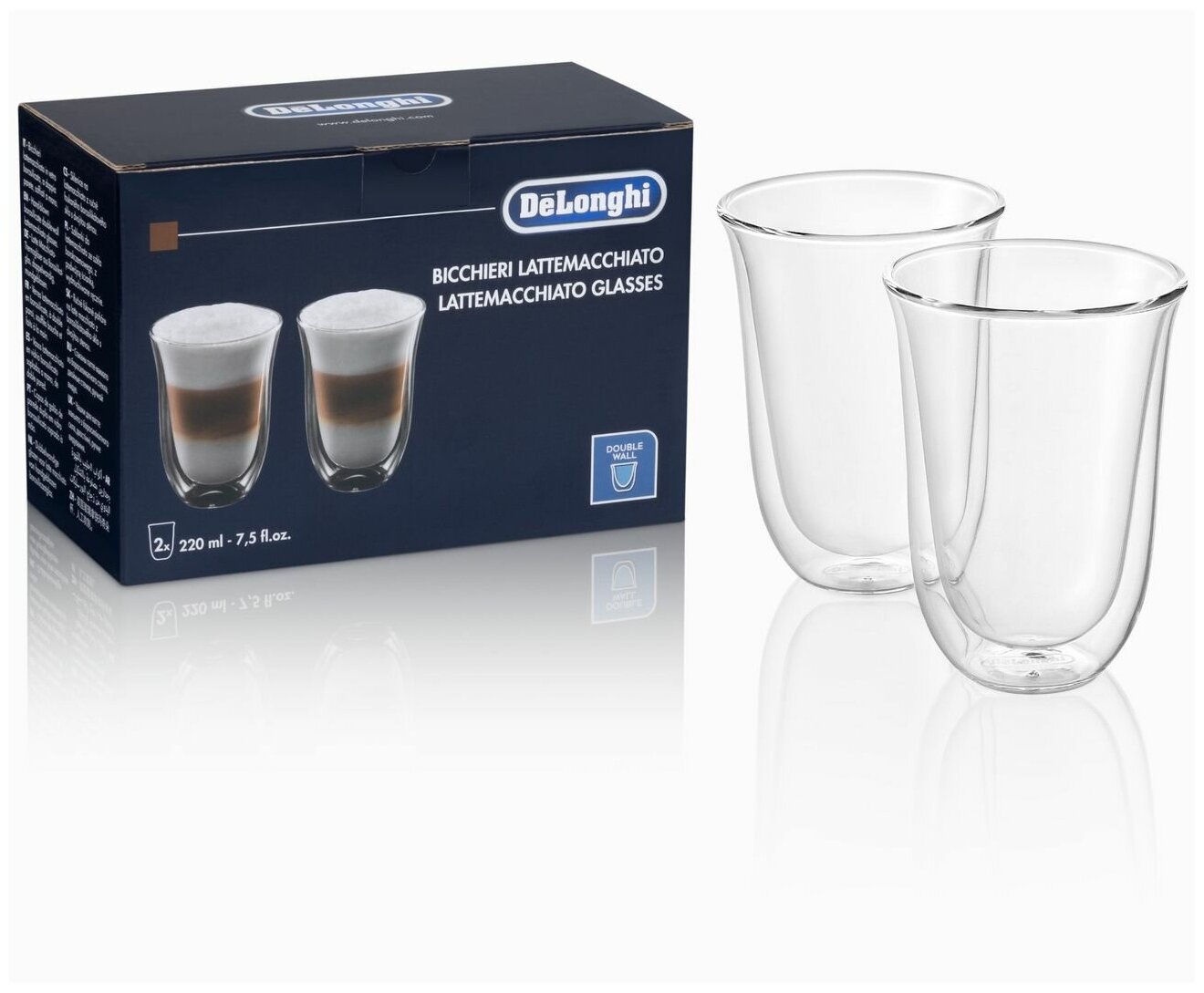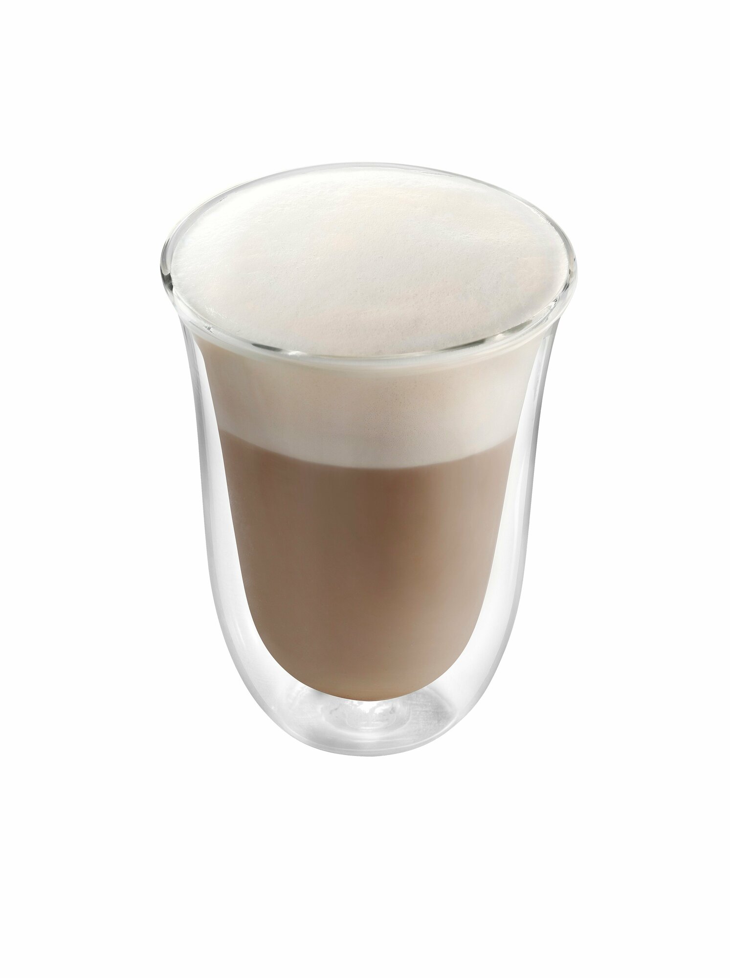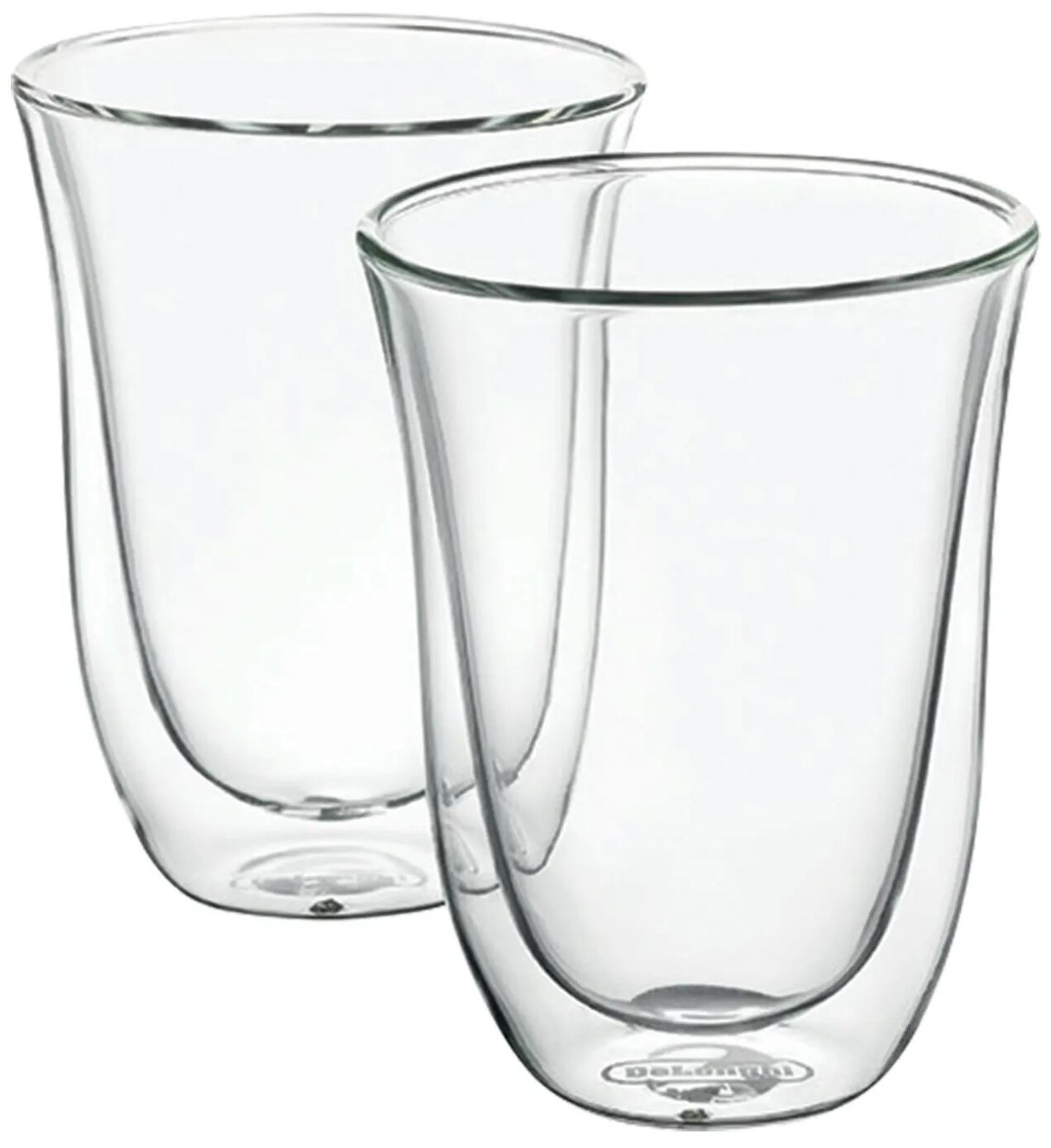 Набор DeLonghi – это два бокала объемом 330 мл, предназначенных для подачи латте макиато. Они выполнены из термостойкого боросиликатного стекла с двойными стенками – прочного материала, устойчивого к высоким температурам и механическим воздействиям.