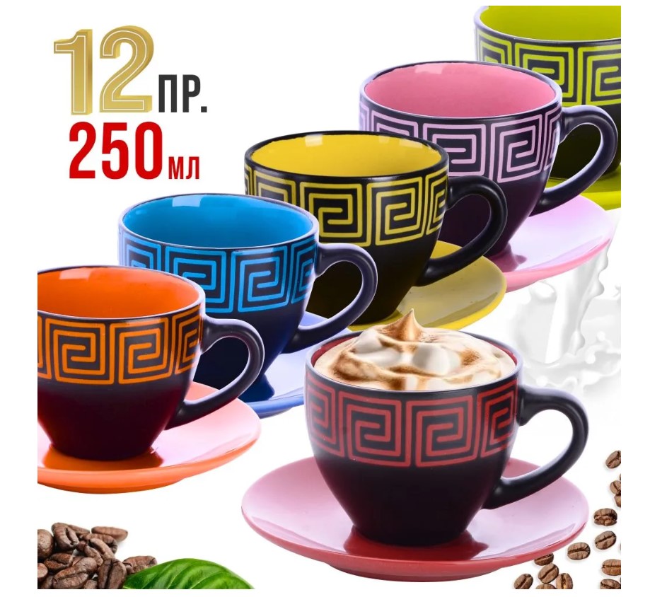 Набор 12 предметов: чашка - 6 шт, блюдце - 6 шт.